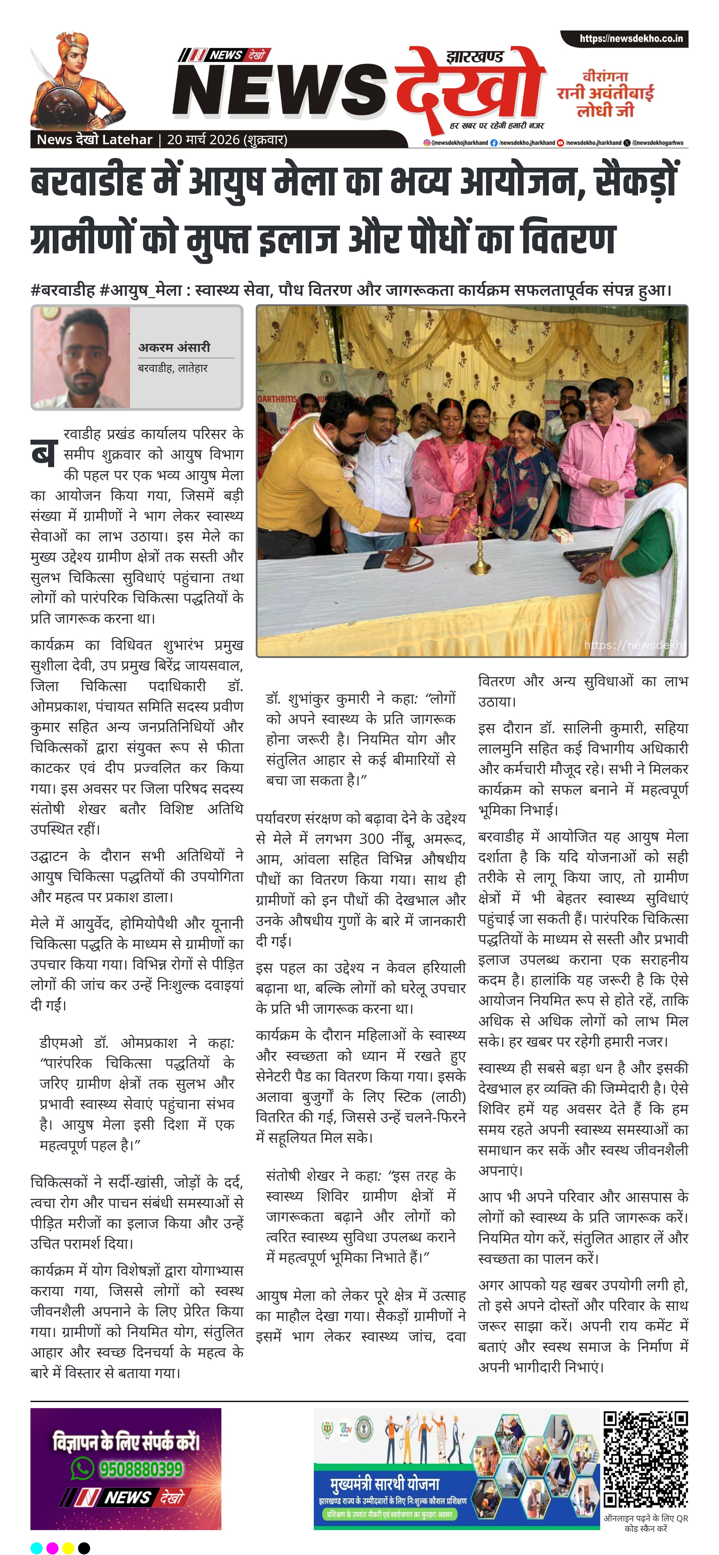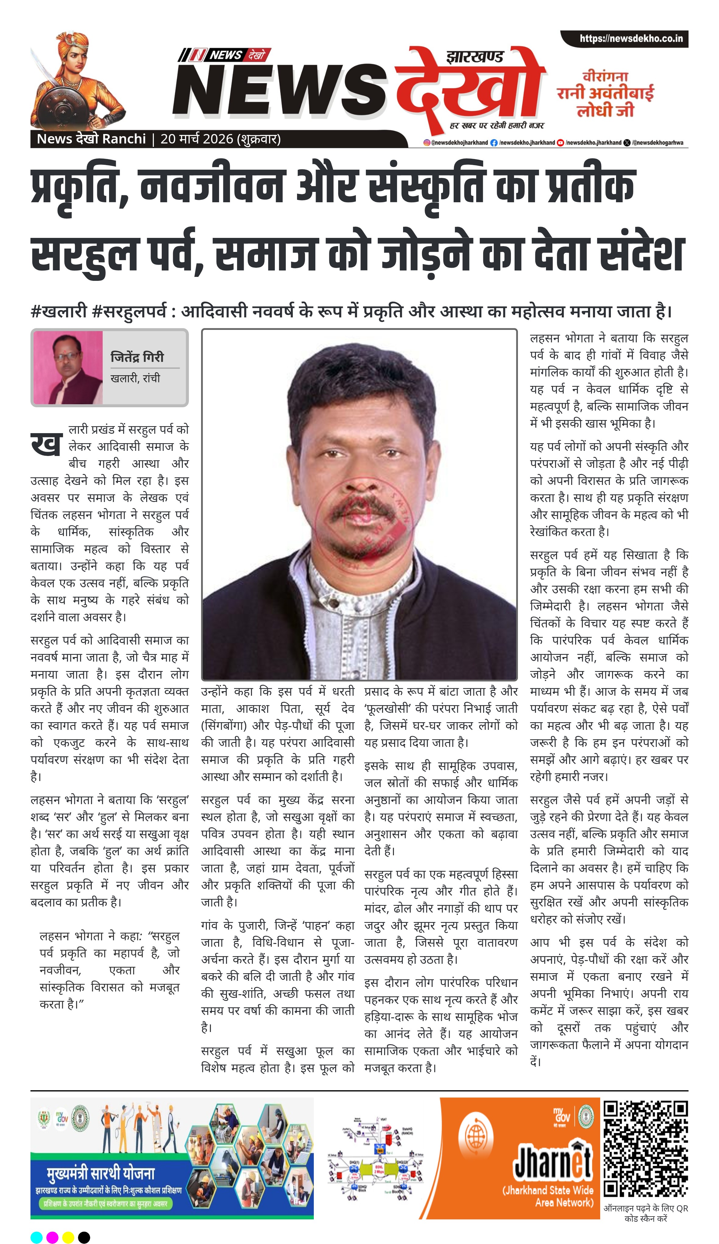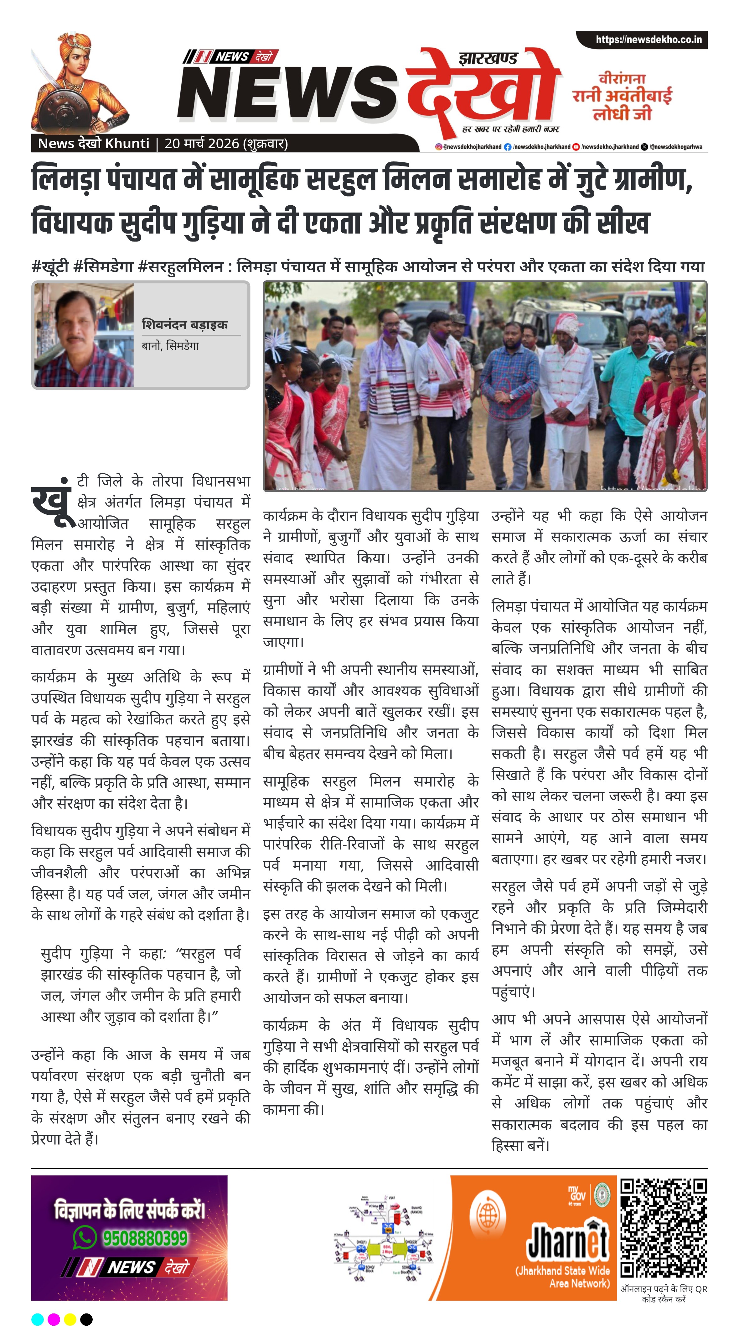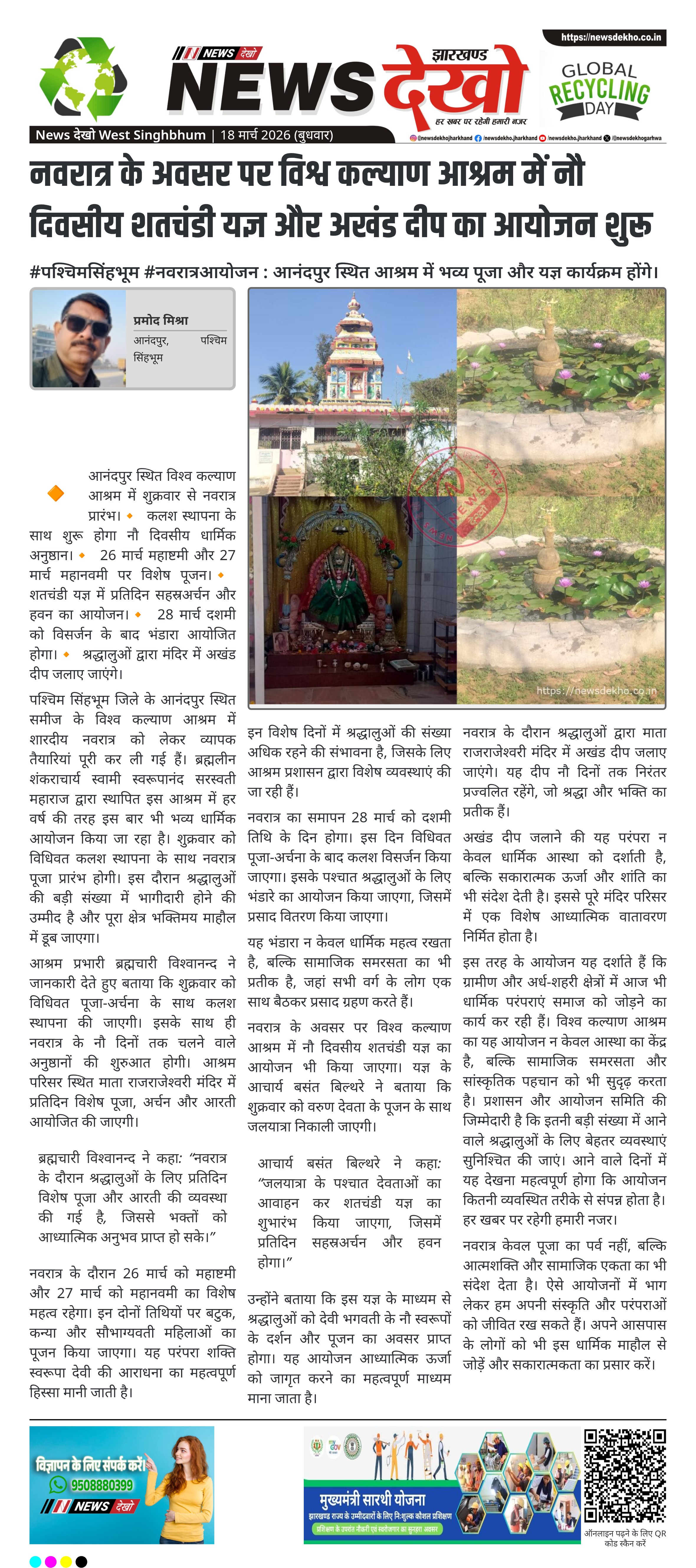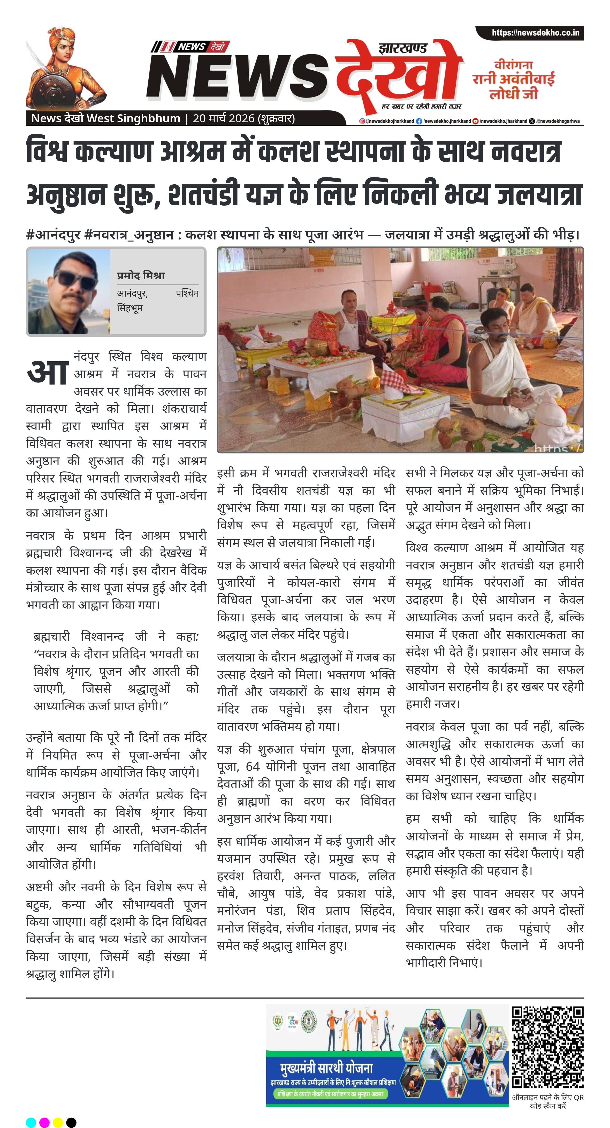 #चंदवा #नववर्ष_प्रतिपदा : संघ स्वयंसेवकों ने सामूहिक कार्यक्रम और दीप प्रज्वलन किया। चंदवा में संघ स्वयंसेवकों ने मनाया नववर्ष प्रतिपदा उत्सव। कार्यक्रम की शुरुआत सामूहिक गीत और प्रार्थना से हुई। महेंद्र प्रसाद ने नववर्ष के महत्व पर किया प्रकाश। शिव मंदिर परिसर में 101 दीप प्रज्वलन का आयोजन तय। रामनाथ…