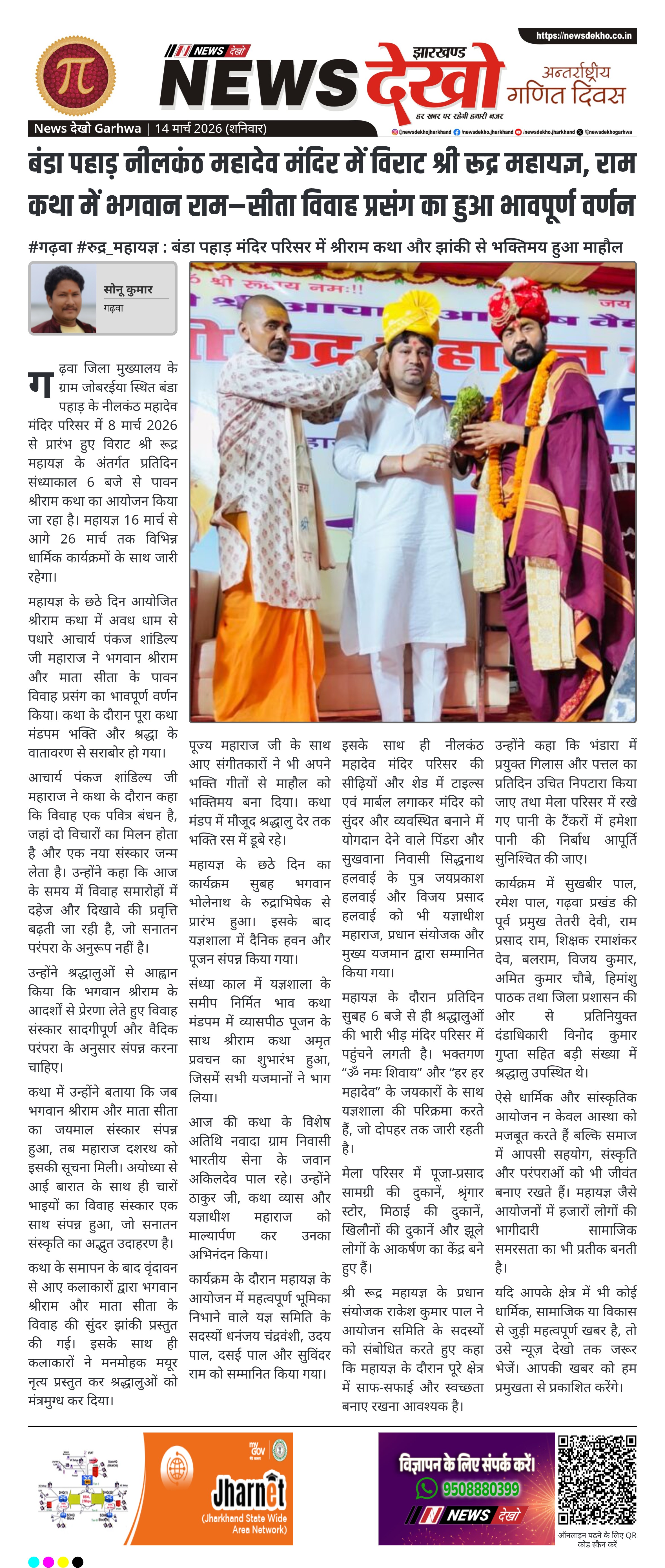 #गढ़वा #रुद्र_महायज्ञ : जोबरईया ग्राम में नौ दिवसीय धार्मिक आयोजन — रुद्राभिषेक और श्रीराम कथा से गूंजा मंदिर परिसर। गढ़वा के जोबरईया ग्राम स्थित बंडा पहाड़ में नीलकंठ महादेव मंदिर परिसर में महायज्ञ जारी। 08 मार्च से 16 मार्च 2026 तक चल रहा नौ दिवसीय विराट श्री रुद्र महायज्ञ। चौथे…