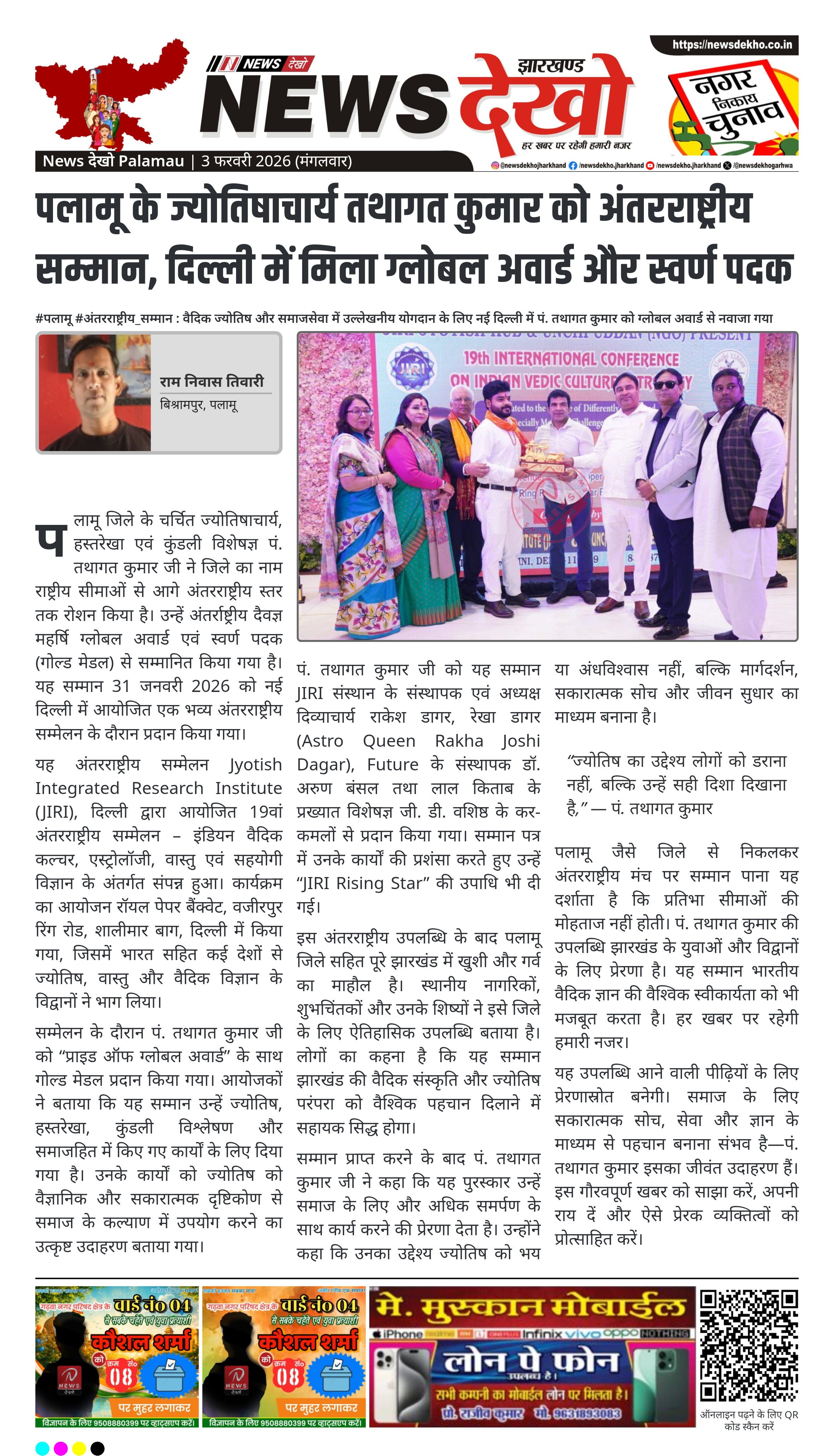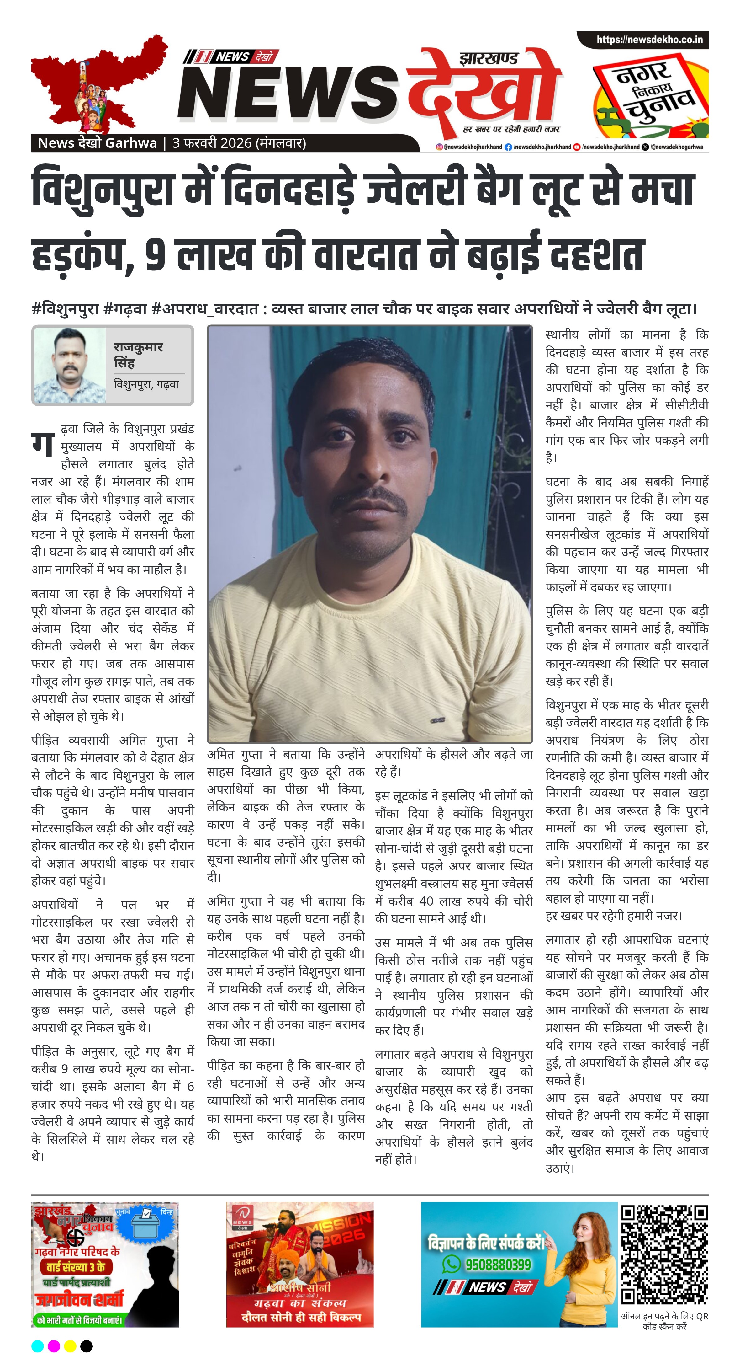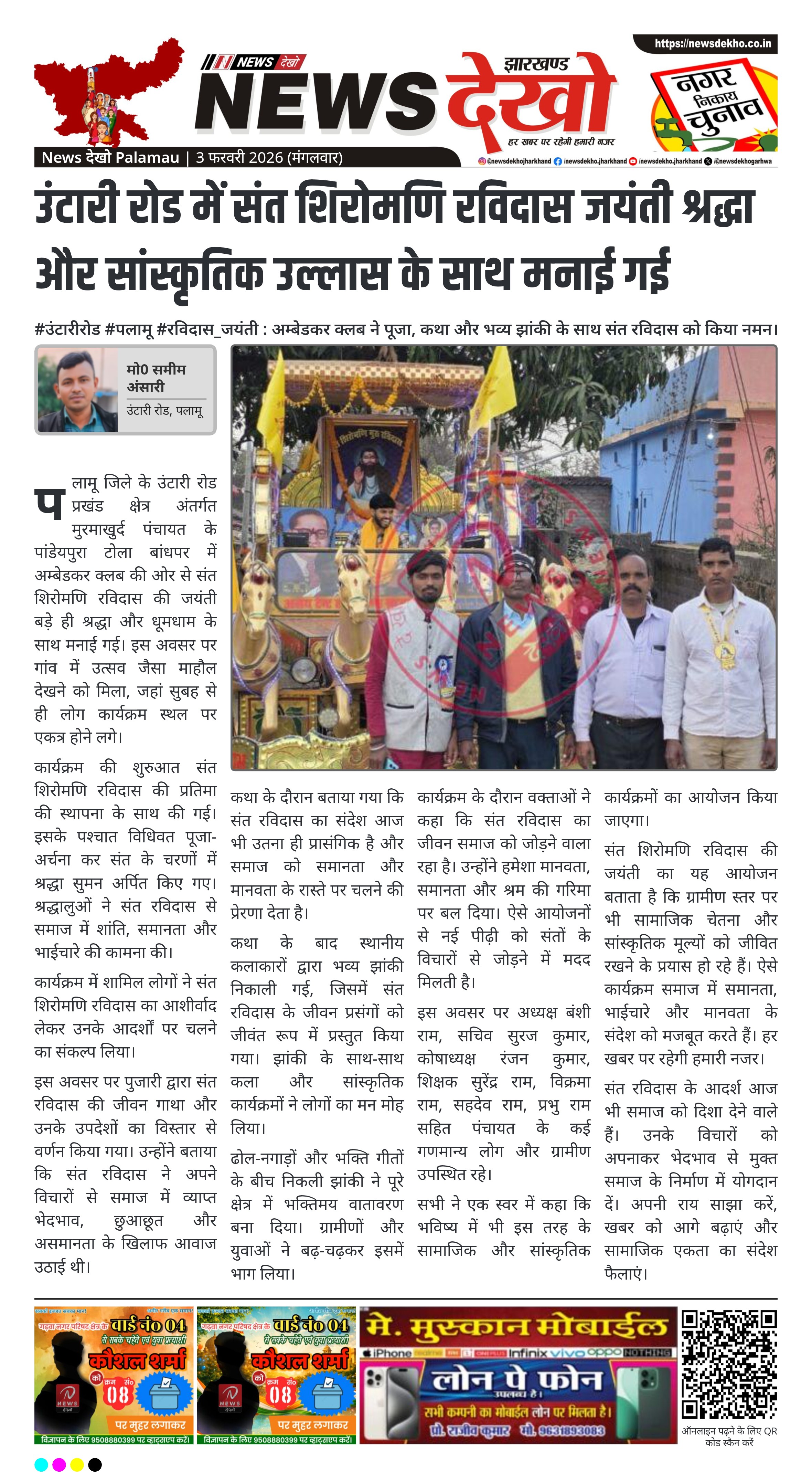 #मेदिनीनगर #विश्रामपुर #नगरपरिषदचुनाव : नामांकन के दौरान उमड़ा जनसैलाब, हजारों समर्थकों के साथ पहुंचीं प्रत्याशी। विश्रामपुर नगर परिषद अध्यक्ष पद की प्रत्याशी हैं रचना कुमारी शुक्ला। नामांकन से पूर्व मंदिर में पूजा-पाठ कर निकाला भव्य जुलूस। हजारों महिला-पुरुष व युवाओं की रही मौजूदगी। शिक्षा, पेयजल, स्वास्थ्य और स्वच्छता को बताया…