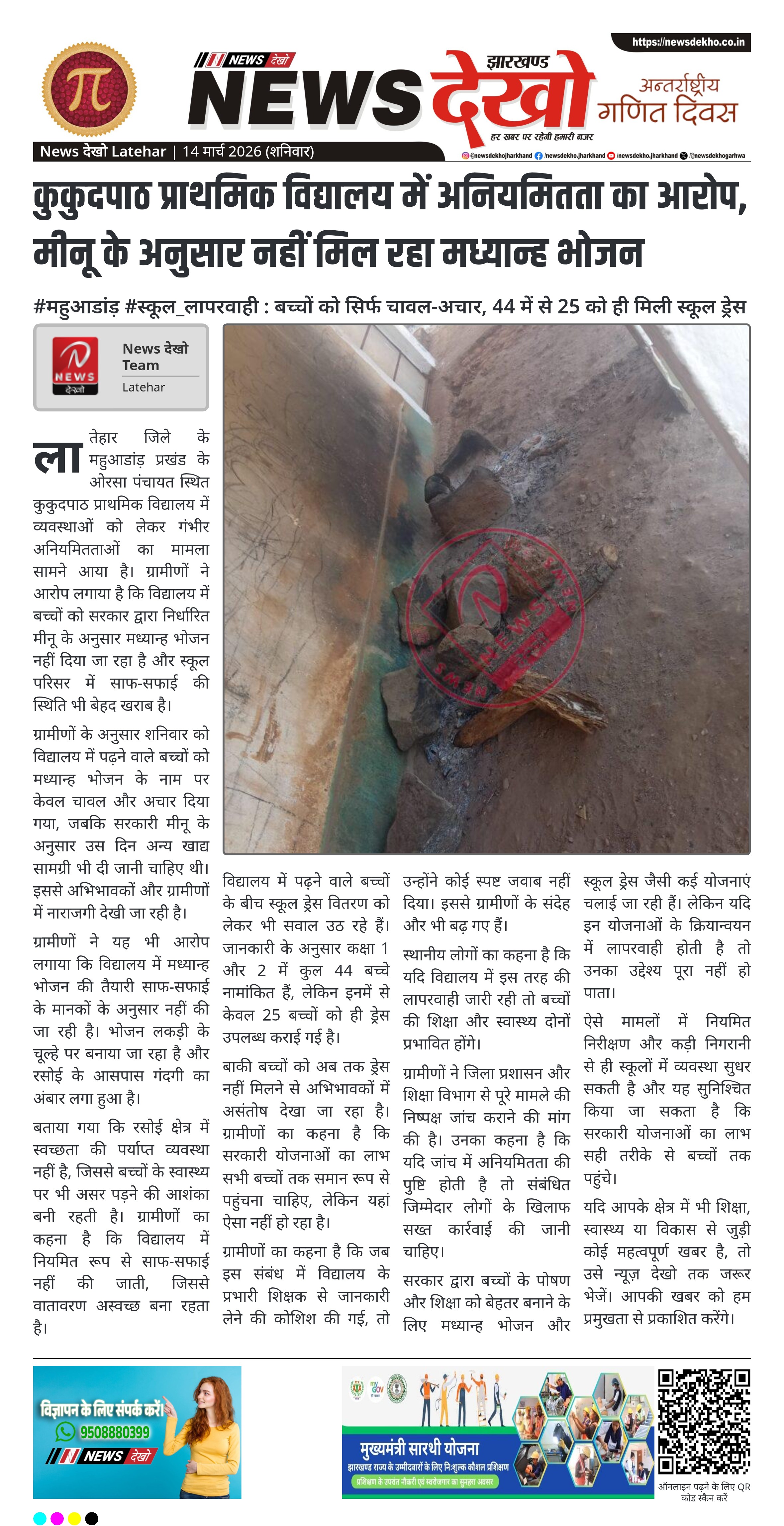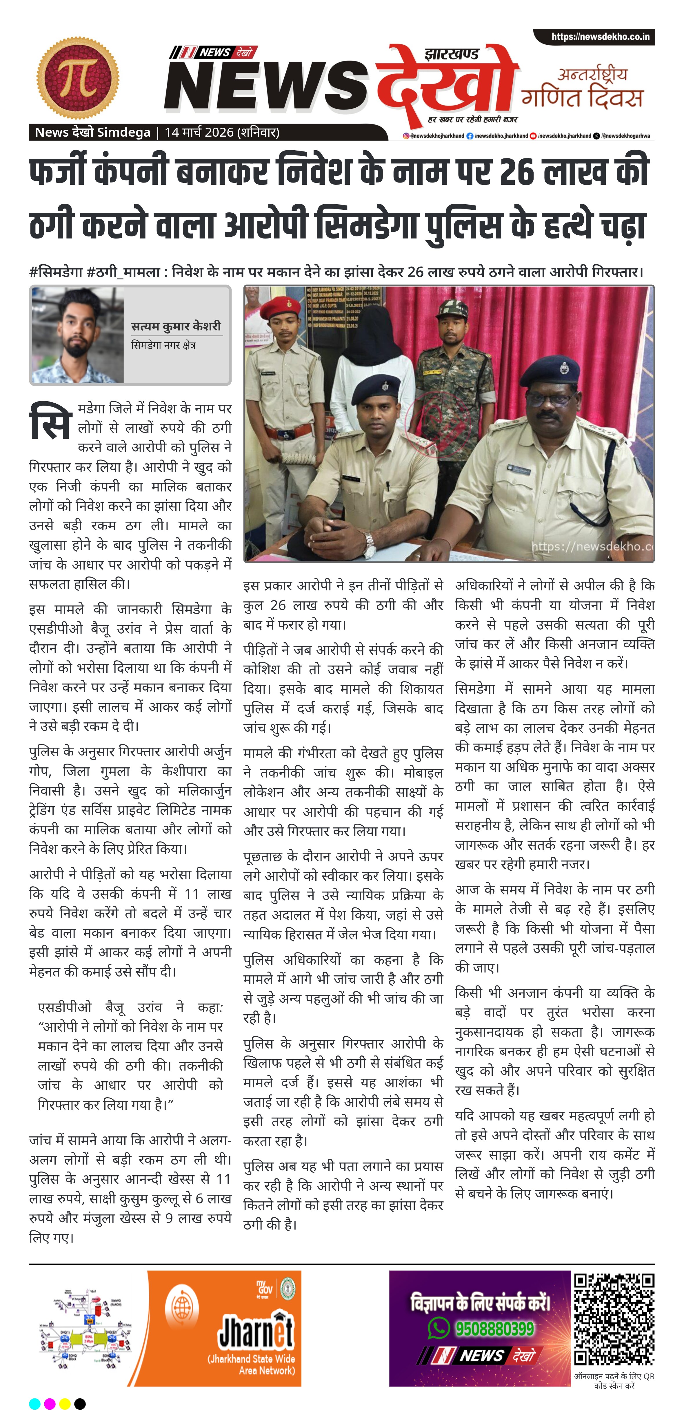 #जलडेगा #पुलिस_जागरूकता : कुटुंगिया विद्यालय में ओड़गा पुलिस ने विद्यार्थियों को कानून, साइबर सुरक्षा और सामाजिक कुरीतियों पर किया जागरूक। कुटुंगिया स्थित शहीद हेरमन रास्काट उच्च विद्यालय में पुलिस का जागरूकता कार्यक्रम। कार्यक्रम का नेतृत्व ओड़गा ओपी प्रभारी सजल धान ने किया। छात्रों को साइबर क्राइम, मानव तस्करी, बाल विवाह…
