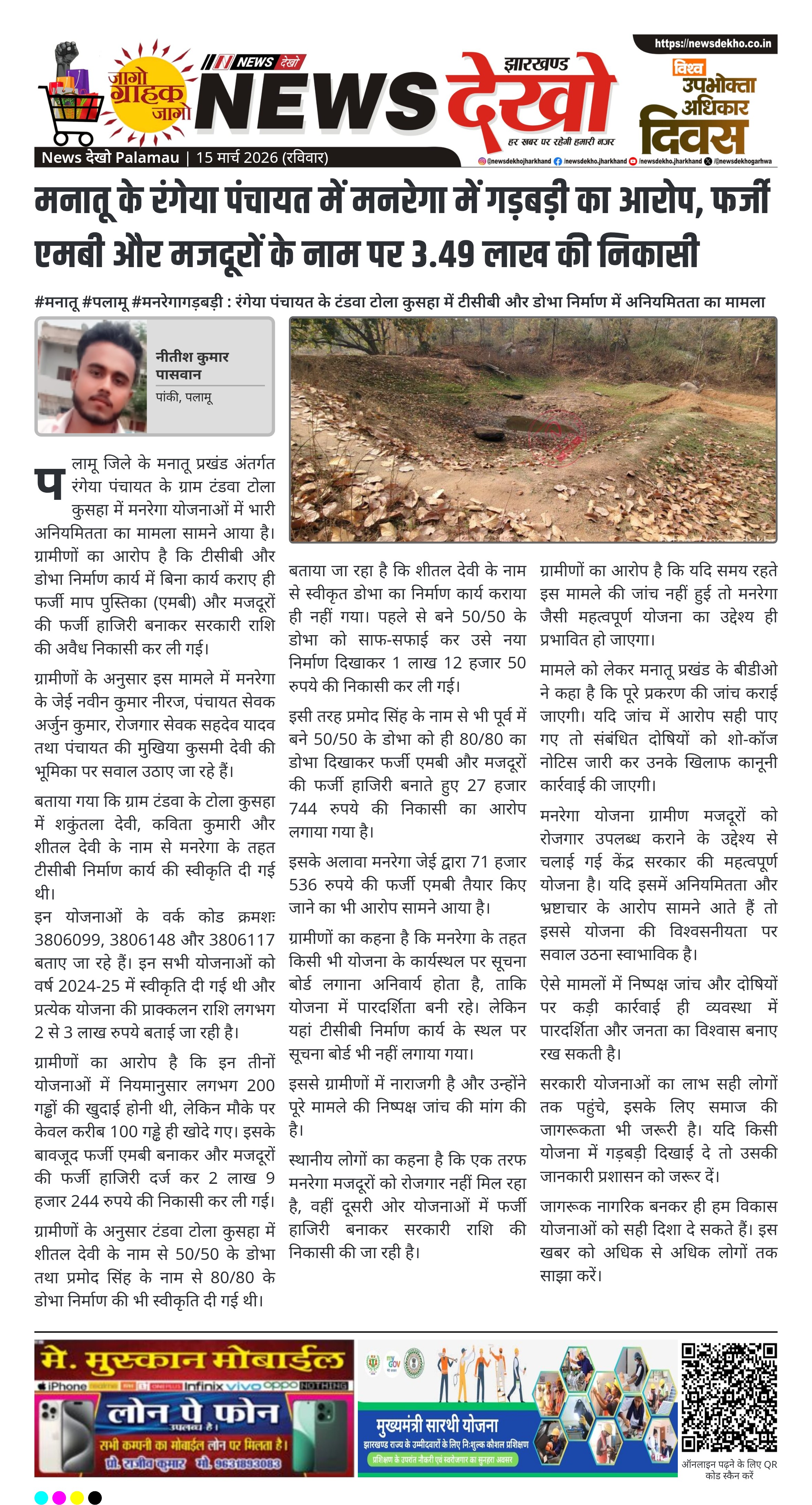 #जलडेगा #मनरेगा : लोमबोई पंचायत में सामाजिक अंकेक्षण के दौरान अधूरे कार्य और मजदूरी भुगतान में देरी को लेकर ग्रामीणों ने जताई नाराजगी। लोमबोई पंचायत सचिवालय में मनरेगा जनसुनवाई आयोजित। ग्राम सभा अध्यक्ष जुनास तोपनो की अध्यक्षता में कार्यक्रम संपन्न। कई योजनाएं, विशेषकर कुआं निर्माण कार्य अधूरे पाए गए। मजदूरों…