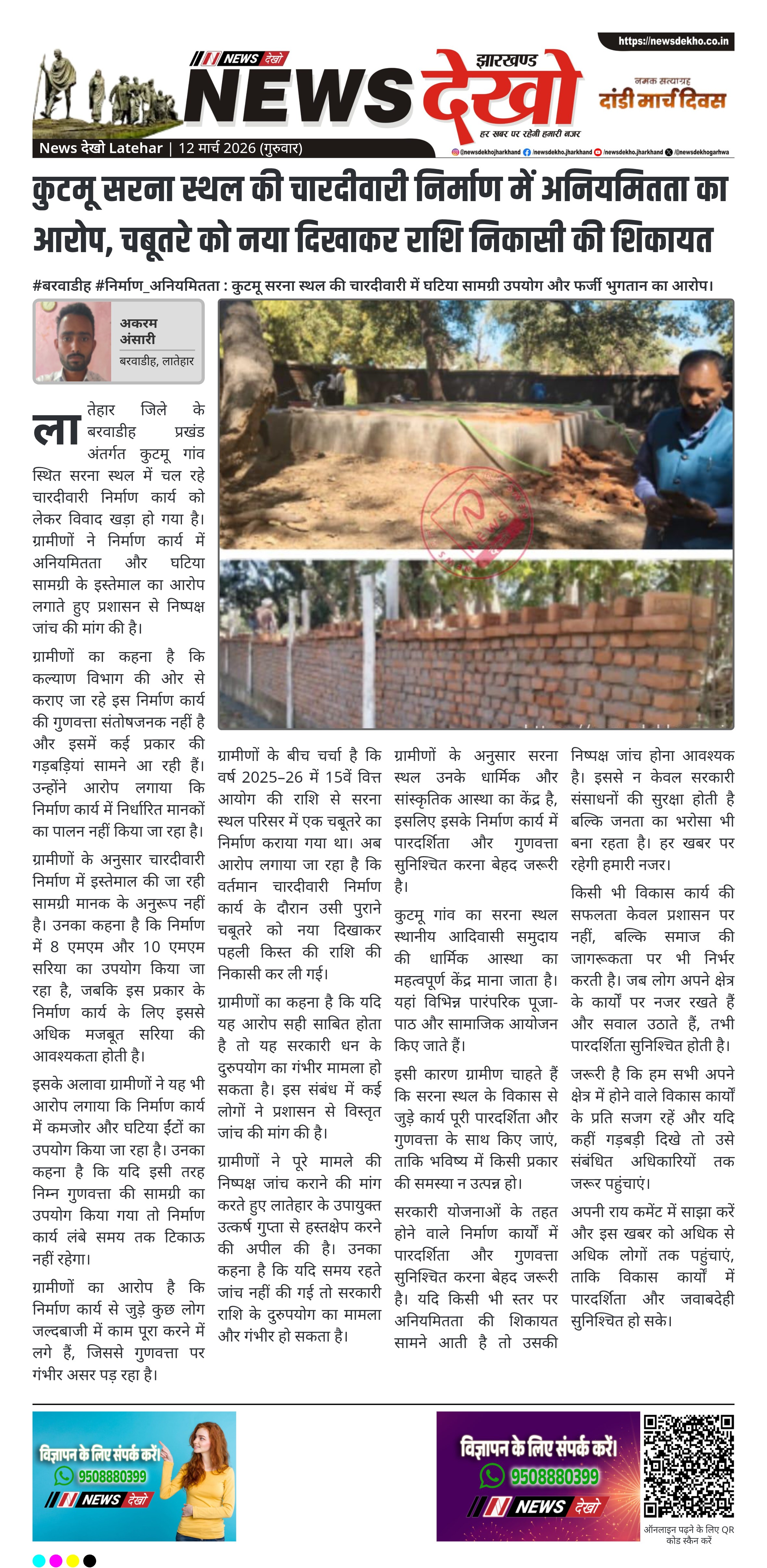 #महुआडांड़ #खनन_अनियमितता : बांसकरचा गांव में निर्माणाधीन एकलव्य आवासीय विद्यालय परिसर में बिना अनुमति बालू भंडारण को लेकर उठे सवाल। बांसकरचा गांव में निर्माणाधीन एकलव्य विद्यालय परिसर में बालू का अंबार। ग्रामीणों ने लगाया बिना चालान और अनुमति डंपिंग का आरोप। कई दिनों से ट्रैक्टरों के जरिए लगातार बालू गिराने…