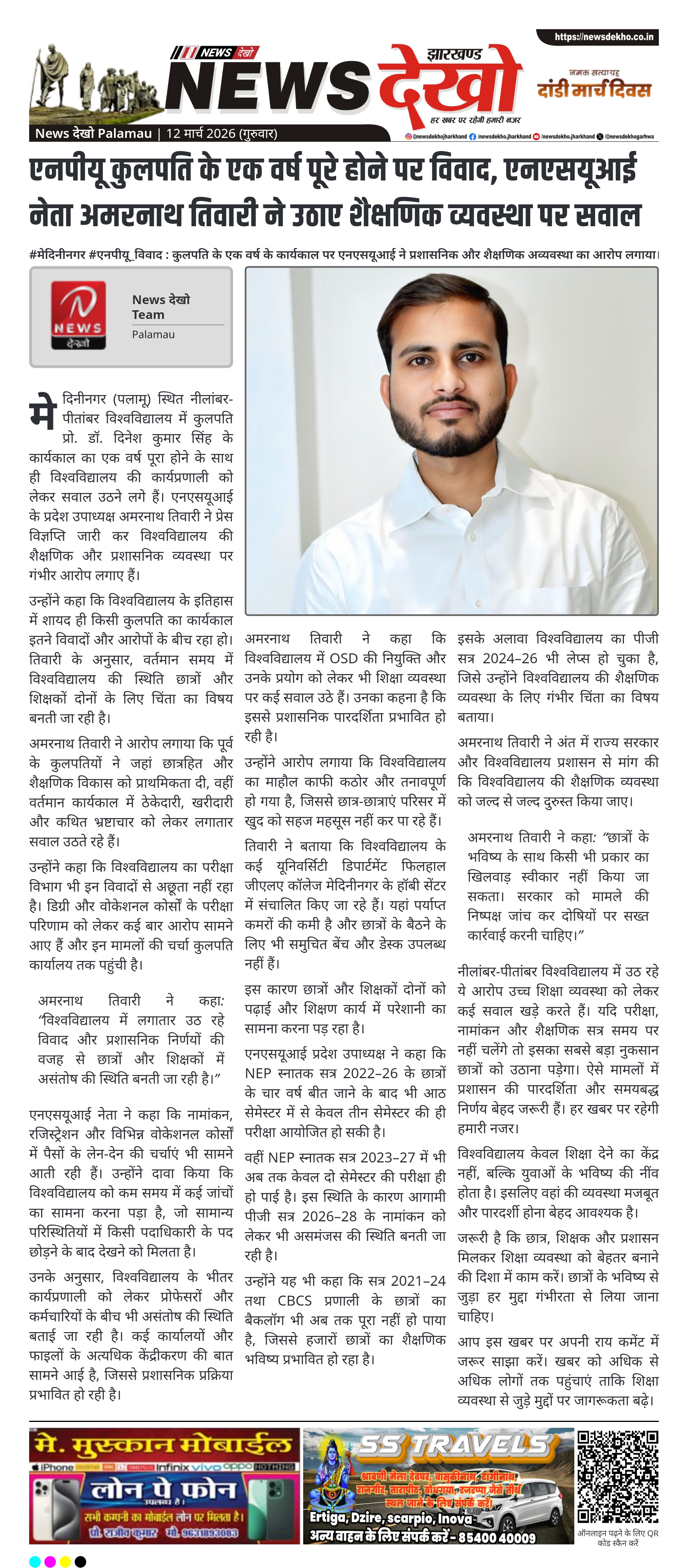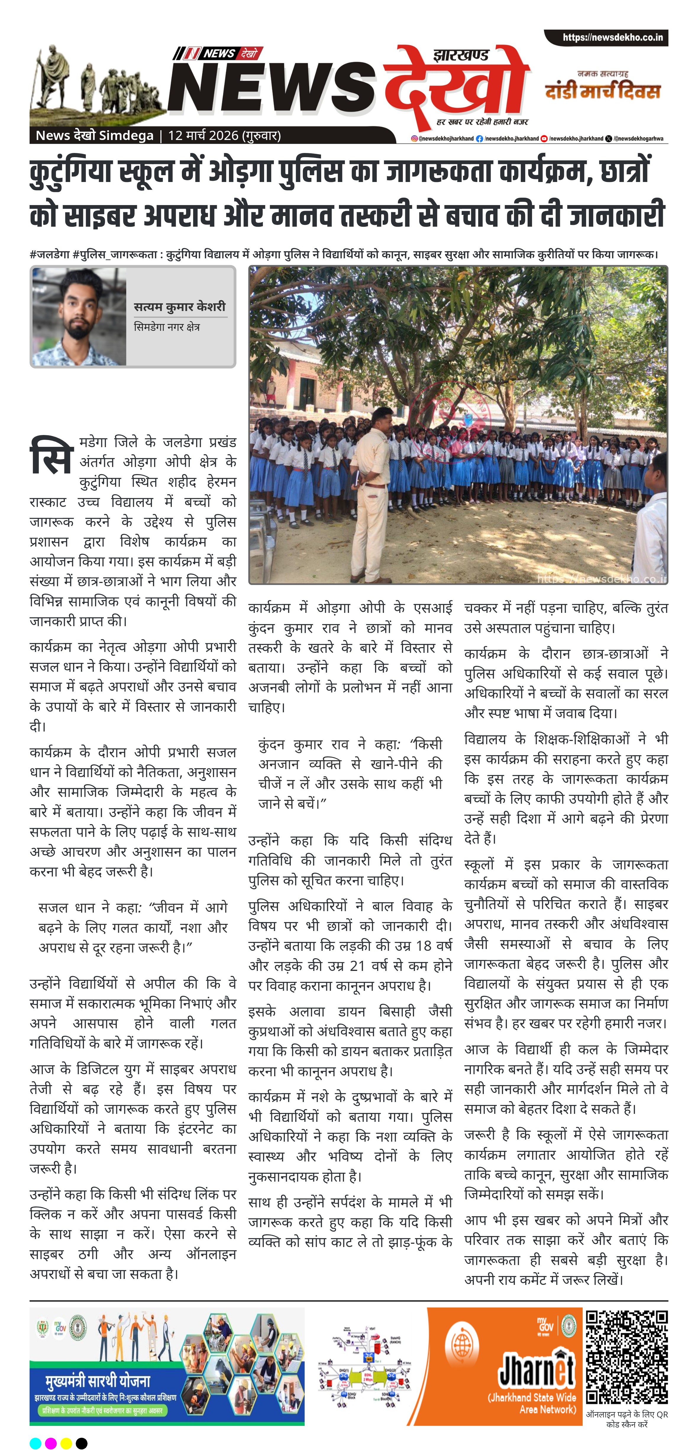#जलडेगा #शिक्षा_बैठक : प्रखंड सभागार में आयोजित गुरुगोष्ठी में शिक्षा योजनाओं के प्रभावी क्रियान्वयन पर जोर दिया गया। जलडेगा प्रखंड सभागार में मासिक गुरुगोष्ठी का आयोजन किया गया। बैठक की अध्यक्षता प्रखंड कार्यक्रम पदाधिकारी मनमोहन कुमार गोस्वामी ने की। उल्लास कार्यक्रम के तहत नवसाक्षरों को 15 मार्च 2026 के मूल्यांकन…