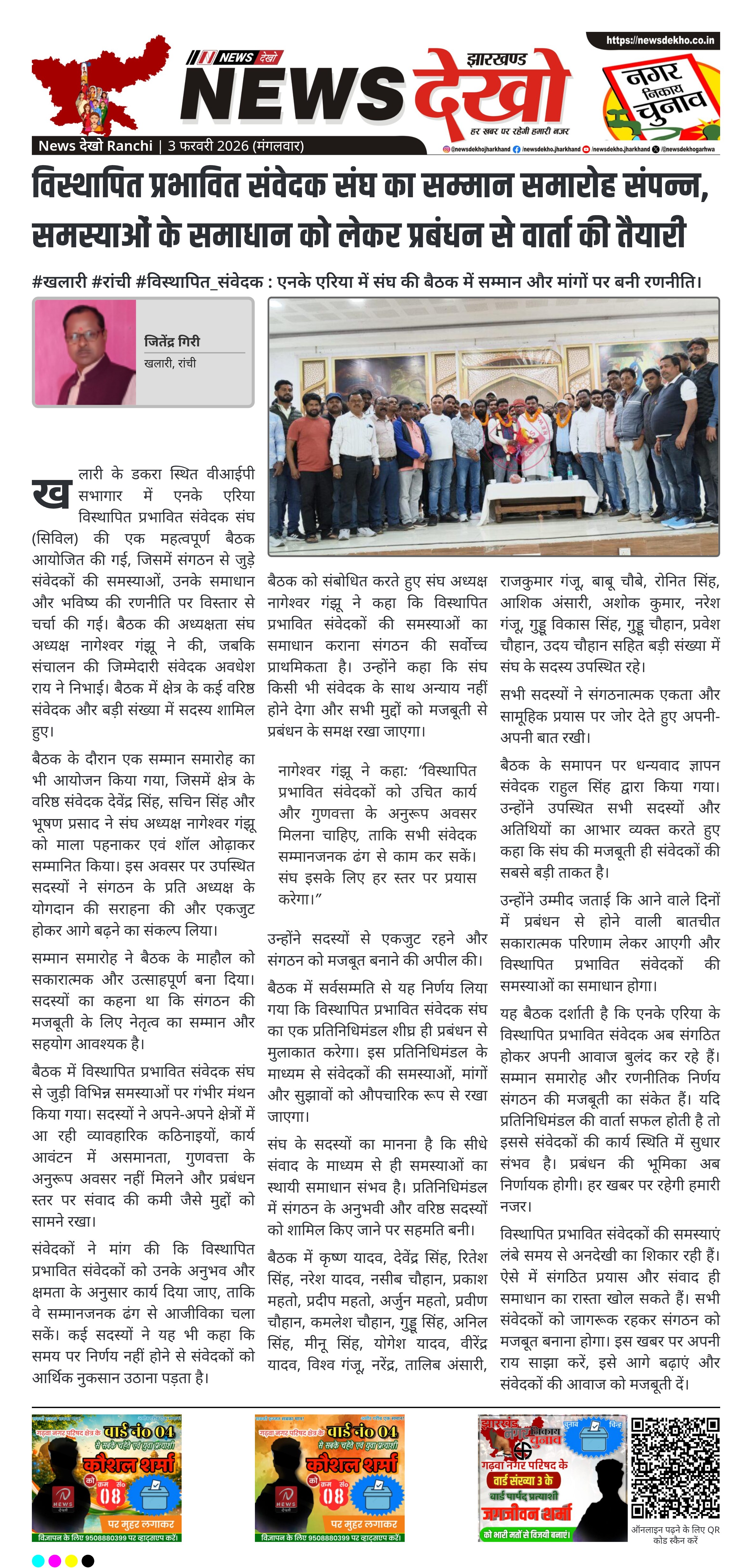 #गिरिडीह #नगरनिगमचुनाव : उत्साहपूर्ण माहौल में नामांकन कर जनसमस्याओं को प्राथमिकता देने का संकल्प। वार्ड संख्या 7 से समीर दीप ने पार्षद पद हेतु नामांकन किया। समर्थकों के साथ उत्साह और जनसमर्थन के बीच नामांकन प्रक्रिया पूरी हुई। ईमानदारी और पारदर्शिता के साथ जनसेवा का संकल्प लिया। सड़क, साफ-सफाई, पेयजल,…