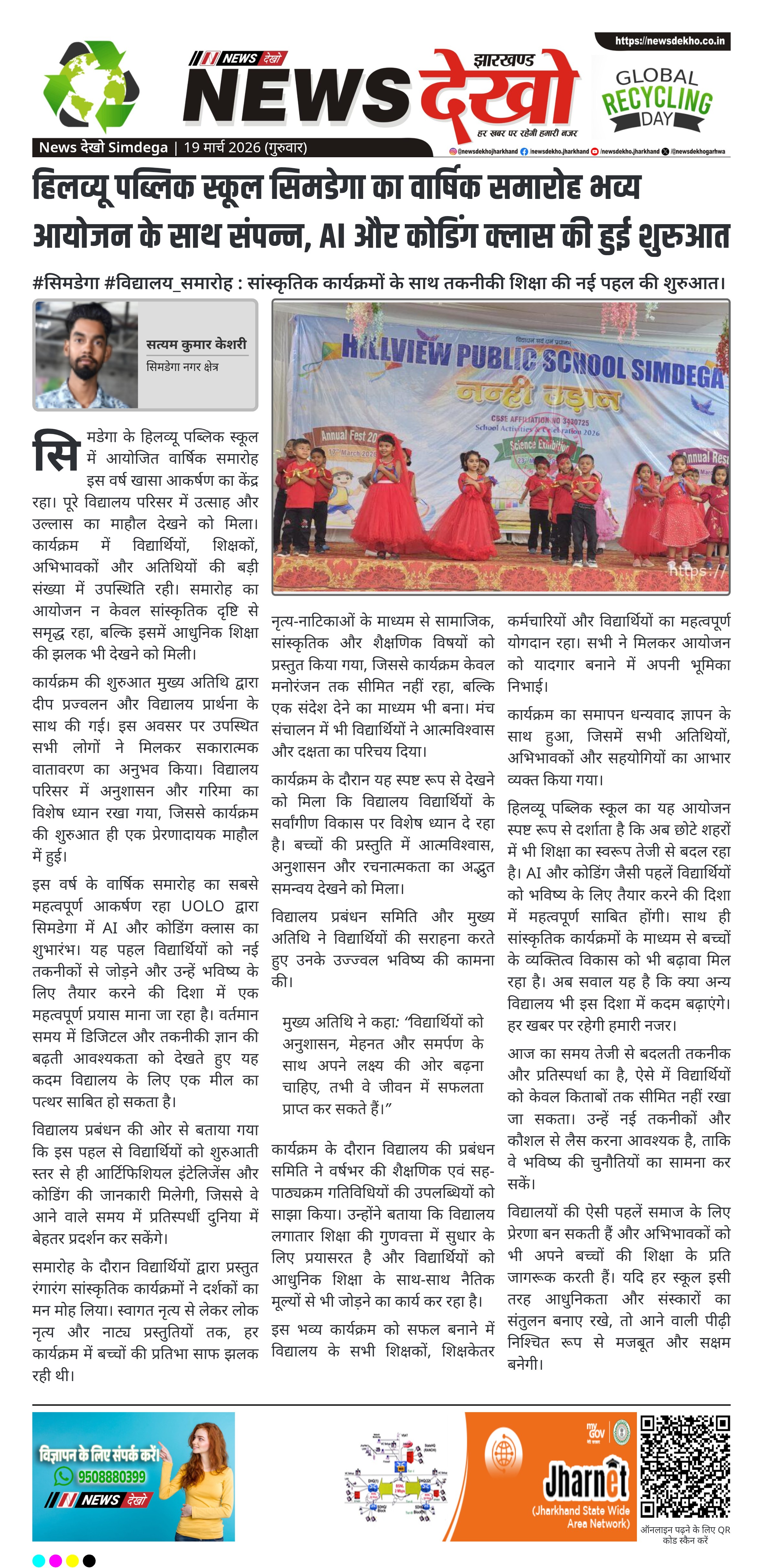 #रायडीह #समावेशी_शिक्षा : पतराटोली विद्यालय में कार्यशाला, दिव्यांग बच्चों के लिए जागरूकता पर जोर पतराटोली विद्यालय में उन्मुखीकरण कार्यशाला आयोजित दिव्यांग बच्चों के अधिकार और योजनाओं पर दी गई जानकारी यूडीआईडी कार्ड और प्रशस्त ऐप के उपयोग पर हुआ प्रशिक्षण बच्चों ने गायन, नृत्य, पेंटिंग व क्विज प्रतियोगिता में लिया…