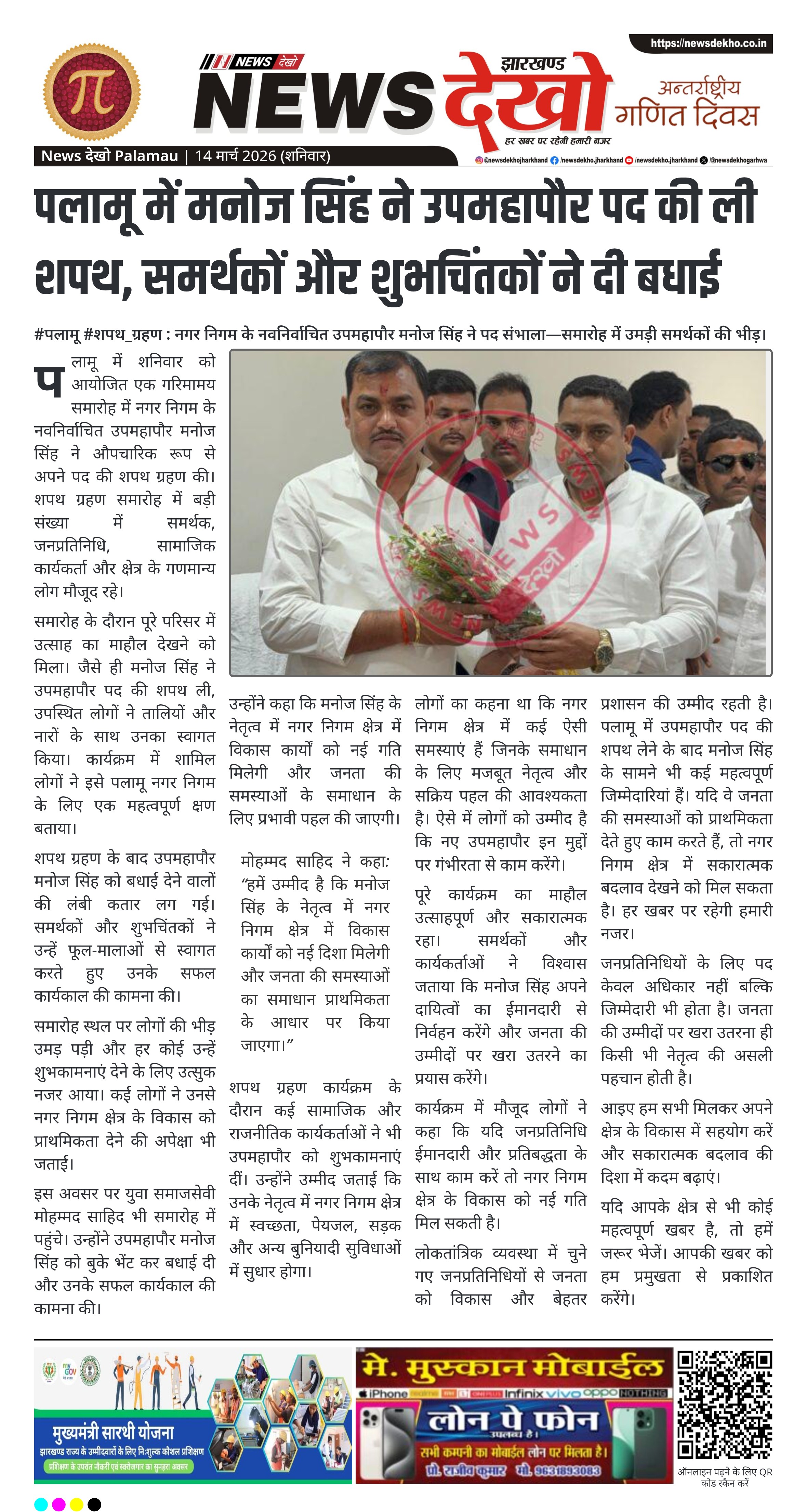 #छतरपुर #नगर_पंचायत : उपायुक्त के आमंत्रण पर 19 मार्च को अनुमंडल कार्यालय में होगा शपथ ग्रहण समारोह। अरविंद गुप्ता को जीत के बाद लगातार मिल रही बधाइयाँ। नगर पंचायत और प्रखंड कार्यालय कर्मियों ने की शिष्टाचार मुलाकात। 19 मार्च 2026 को होगा शपथ ग्रहण समारोह। कार्यक्रम सुबह 10:10 बजे अनुमंडल…