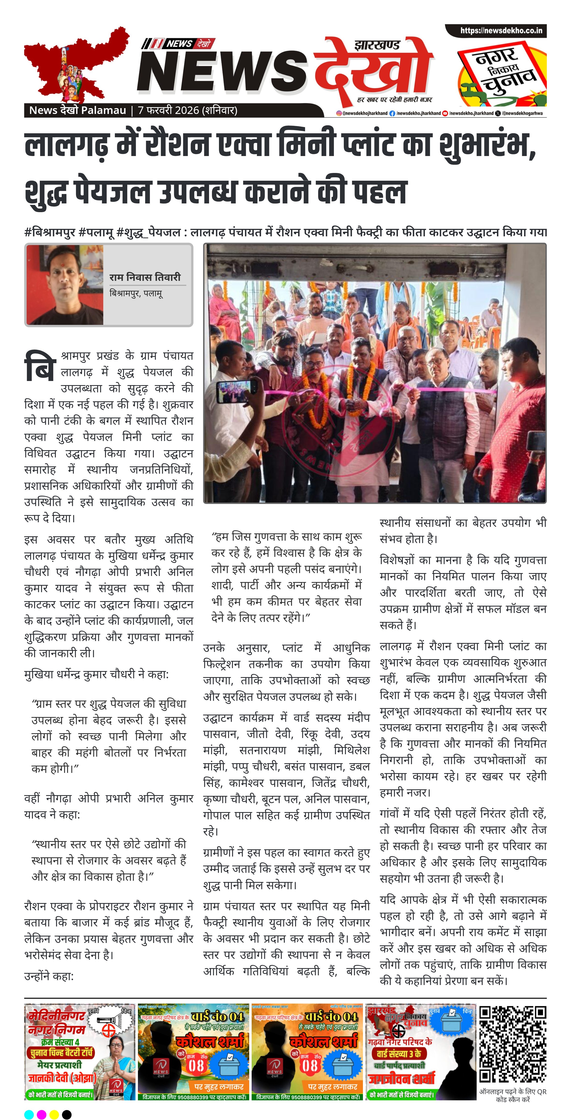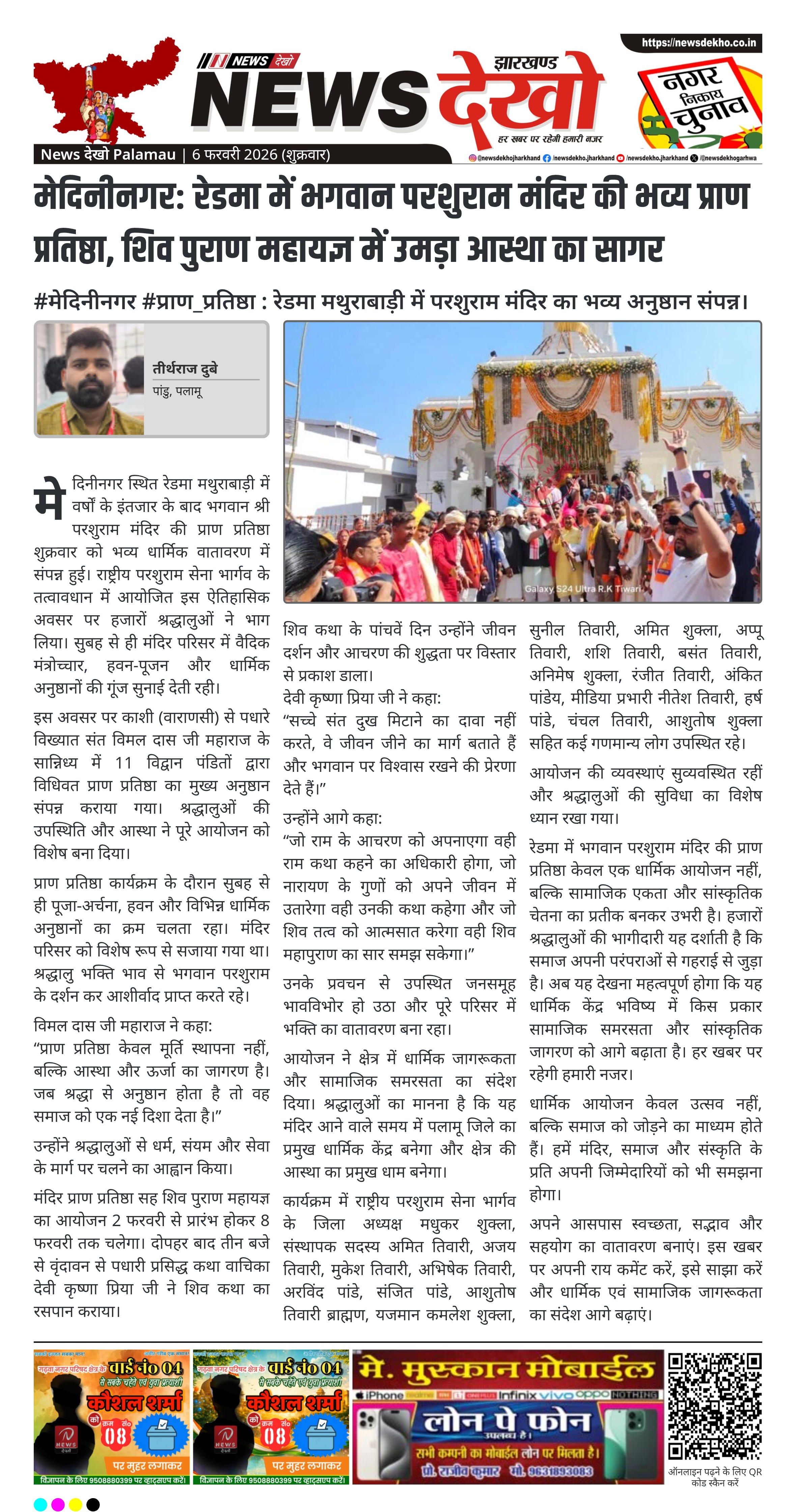 #मेदिनीनगर #प्राण_प्रतिष्ठा : रेडमा मथुराबाड़ी में परशुराम मंदिर का भव्य अनुष्ठान संपन्न। रेडमा मथुराबाड़ी, मेदिनीनगर में नवनिर्मित मंदिर में प्राण प्रतिष्ठा। संत विमल दास जी महाराज (काशी) के सान्निध्य में वैदिक अनुष्ठान। 11 विद्वान पंडितों द्वारा मंत्रोच्चार और हवन-पूजन। 2 से 8 फरवरी तक शिव पुराण महायज्ञ का आयोजन। वृंदावन…