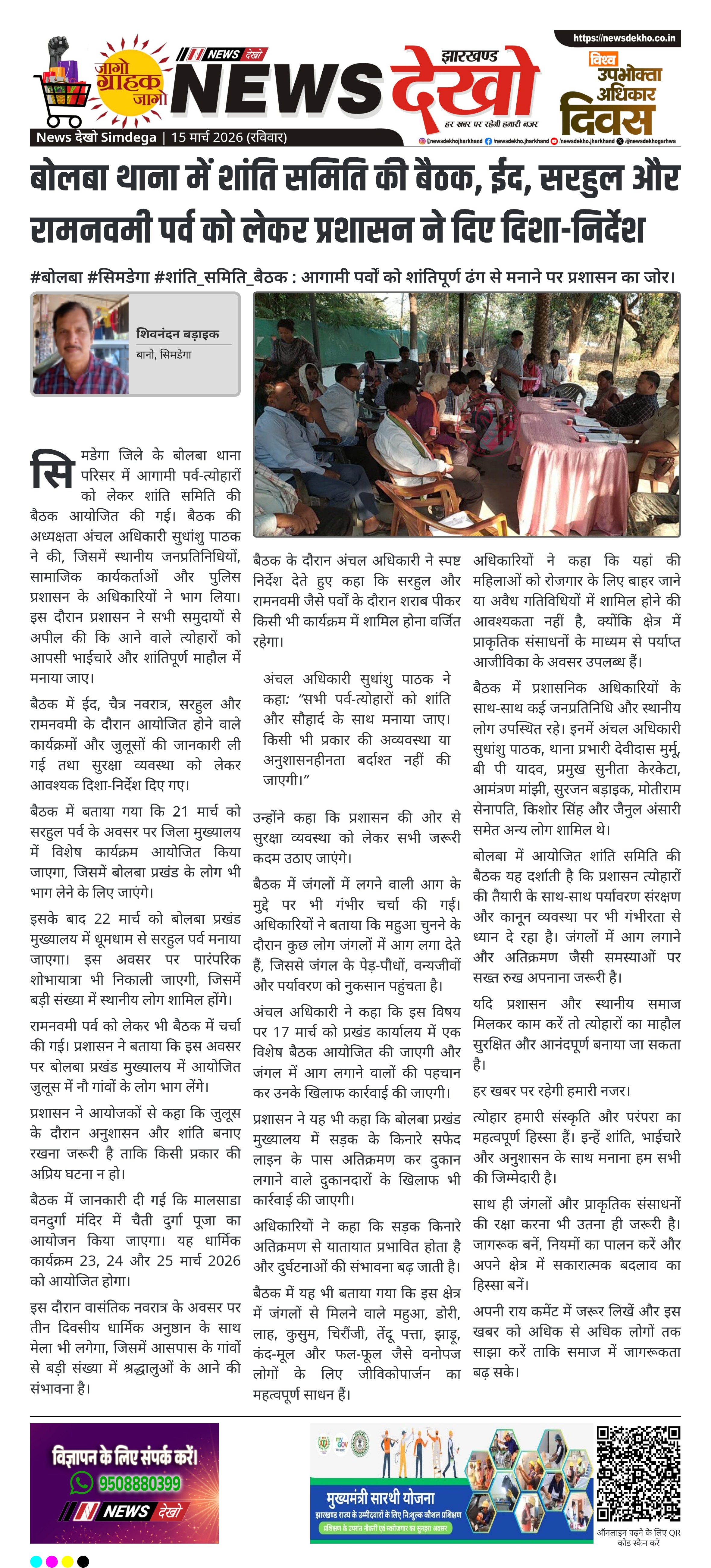 #सिमडेगा #रामनवमी_तैयारी : महाबीर चौक मंदिर में बैठक — समिति विस्तार और महापर्व की तैयारियों पर चर्चा। सिमडेगा के महाबीर चौक स्थित महाबीर मंदिर में रामनवमी प्रबंधन समिति की बैठक। बैठक की अध्यक्षता प्रदीप शर्मा ने की। राजेश सिंह को समिति का संरक्षक बनाने पर सहमति। कई नए पदाधिकारियों और…