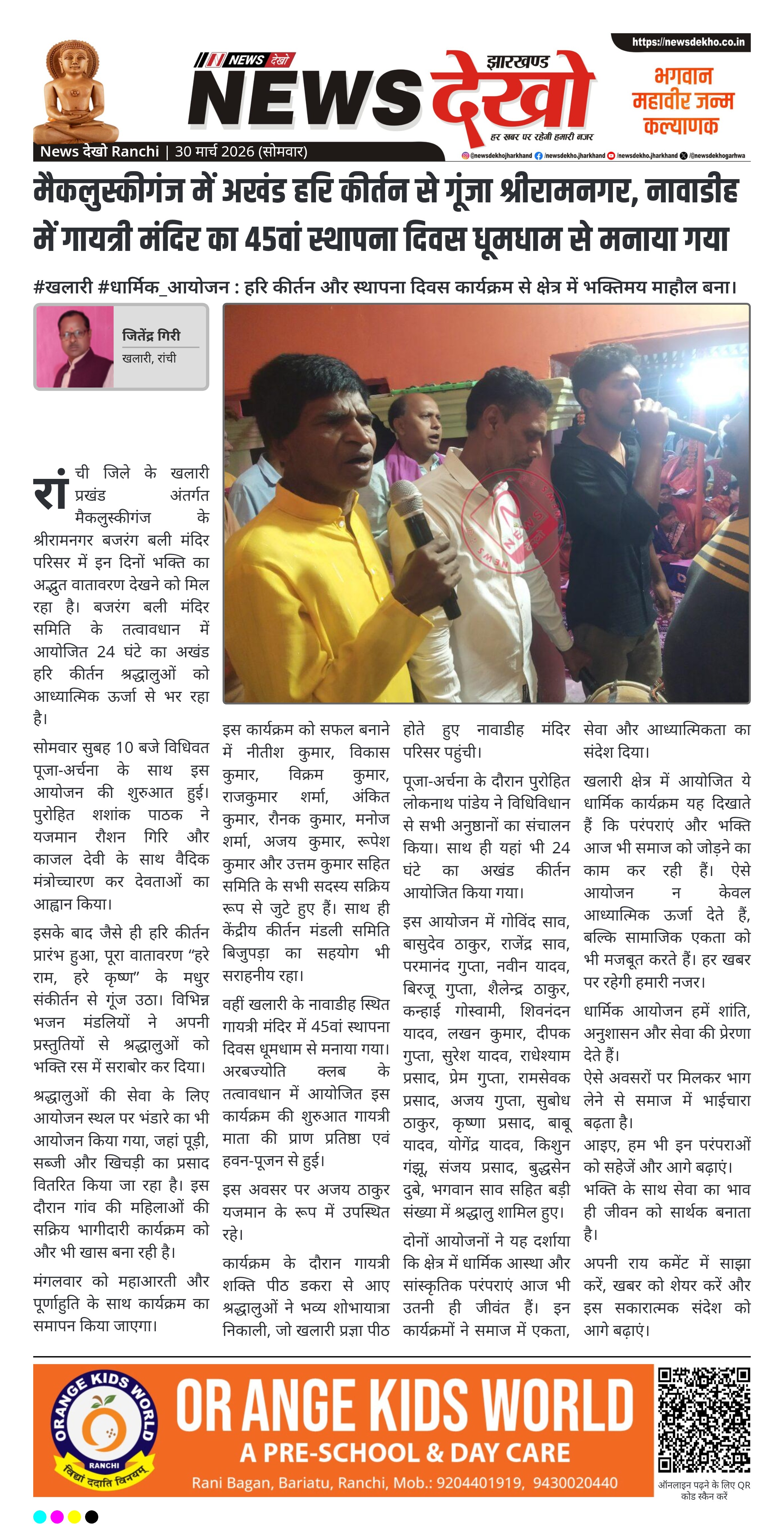 मैकलुस्कीगंज में अखंड हरि कीर्तन से गूंजा श्रीरामनगर, नावाडीह में गायत्री मंदिर का 45वां स्थापना दिवस धूमधाम से मनाया गया