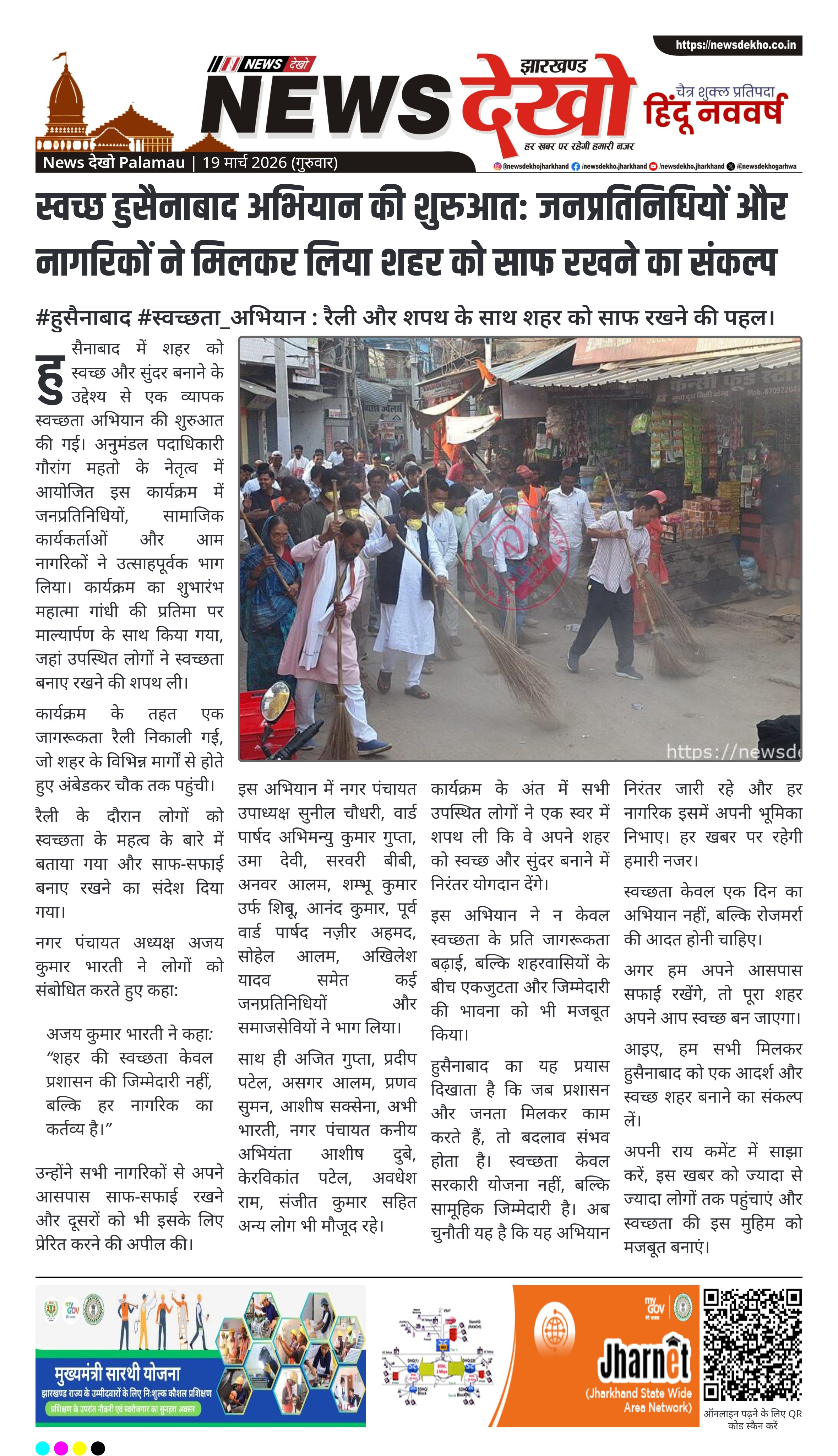 स्वच्छ हुसैनाबाद अभियान की शुरुआत: जनप्रतिनिधियों और नागरिकों ने मिलकर लिया शहर को साफ रखने का संकल्प