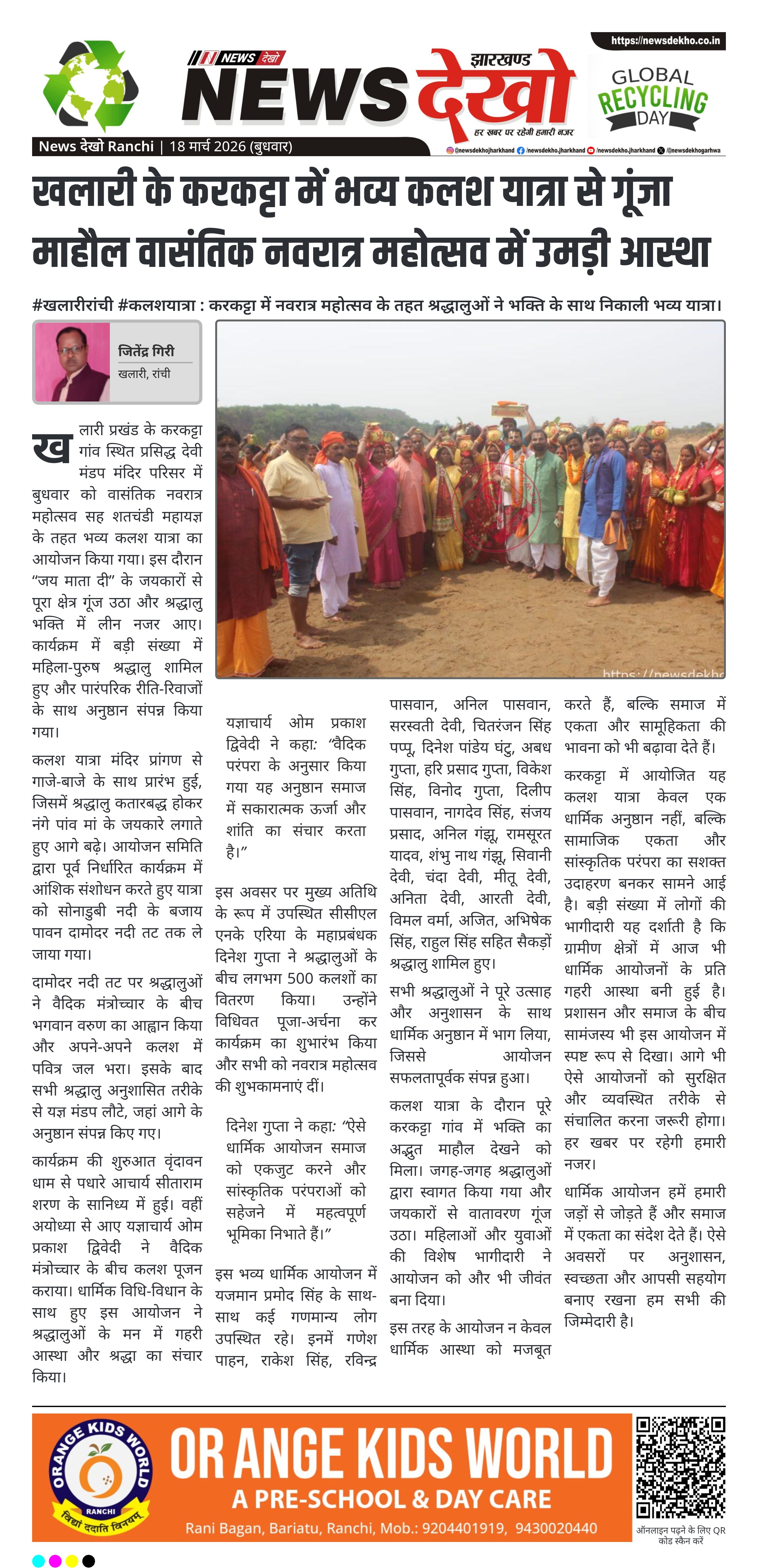 #लावालौंग #चैती_नवरात्र : कलश यात्रा और दुर्गा सप्तशती पाठ से महोत्सव शुरू हुआ। लावालौंग (चतरा) में 201 कलश के साथ भव्य यात्रा निकली। मगरदहा नदी से जल भरकर मंदिर में कलश स्थापना। दुर्गा सप्तशती पाठ के साथ महोत्सव की शुरुआत। जगदेव प्रजापति ने 9 दिनों के कार्यक्रम की जानकारी दी।…