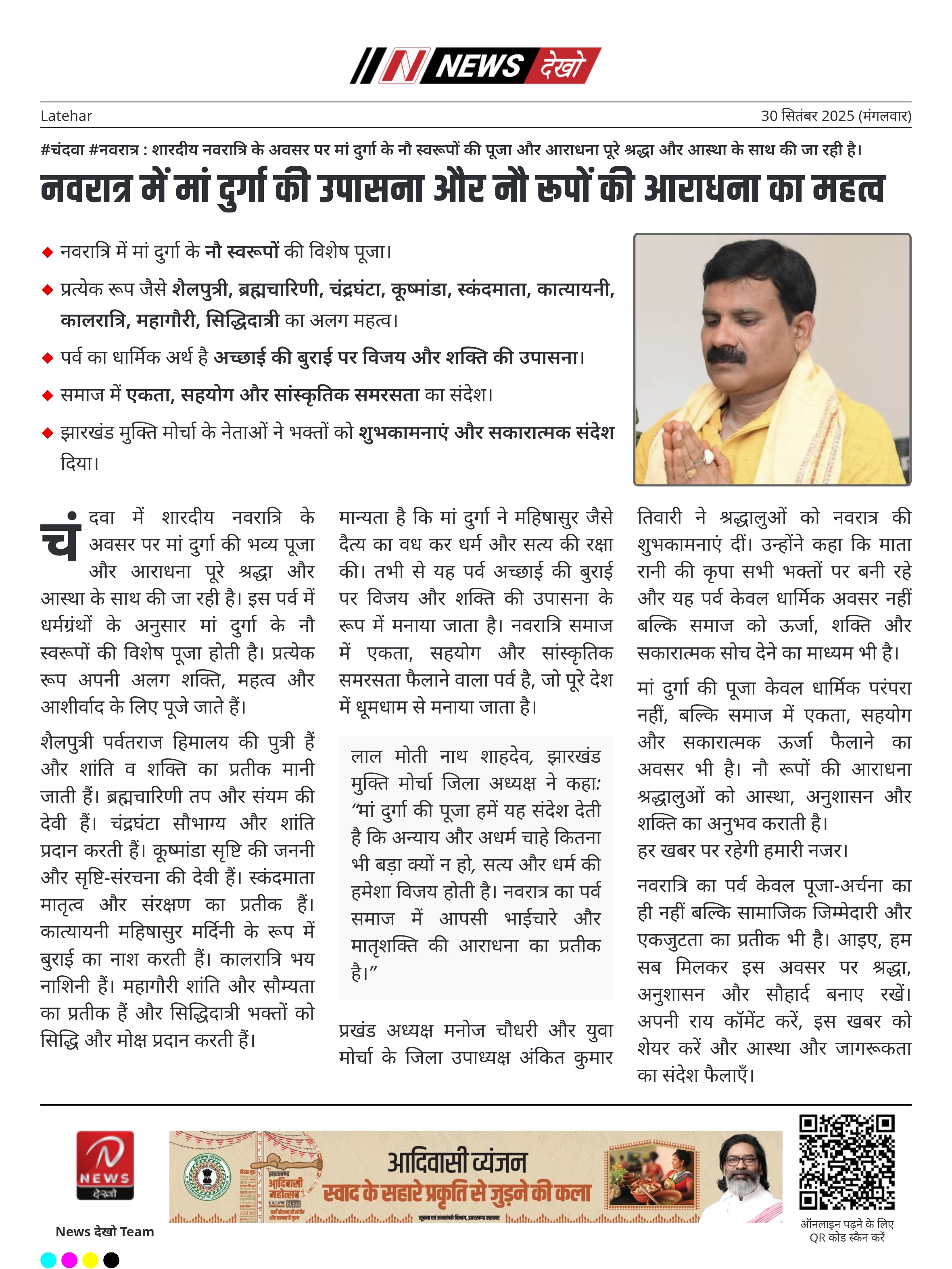 #पलामू #नवरात्रि : नौ दिवसीय पर्व में मां दुर्गा की आराधना और पाठ से मानसिक और आध्यात्मिक शक्ति प्राप्त होती है। नवरात्रि के नौ दिन अत्यंत पवित्र और महत्वपूर्ण माने जाते हैं। इस समय पूजा, पाठ, मंत्र, जप से आध्यात्मिक लाभ होता है। रामचरितमानस का नवाहन पारायण और दुर्गा सप्तशती…