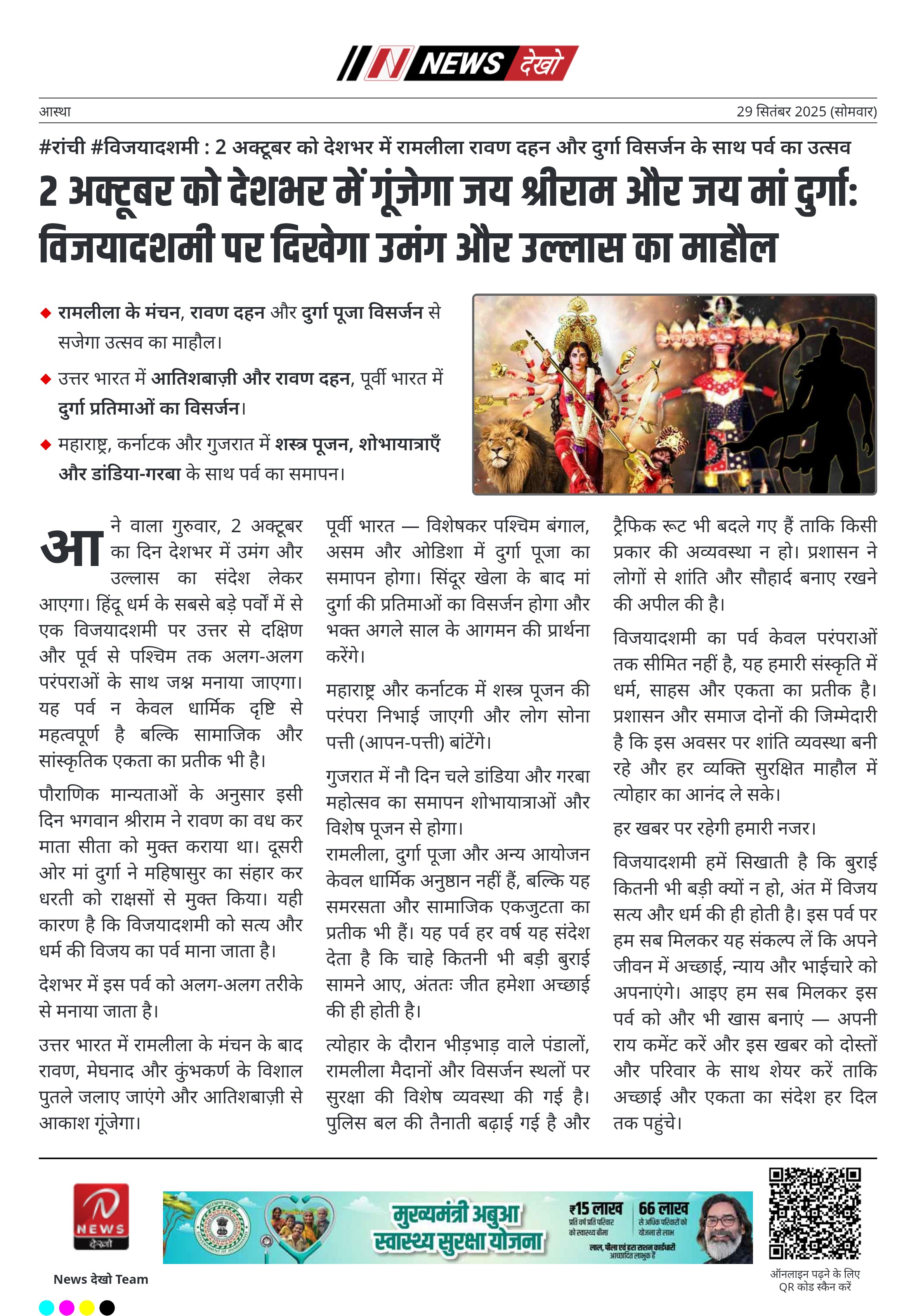 2 अक्टूबर को देशभर में गूंजेगा जय श्रीराम और जय मां दुर्गा: विजयादशमी पर दिखेगा उमंग और उल्लास का माहौल