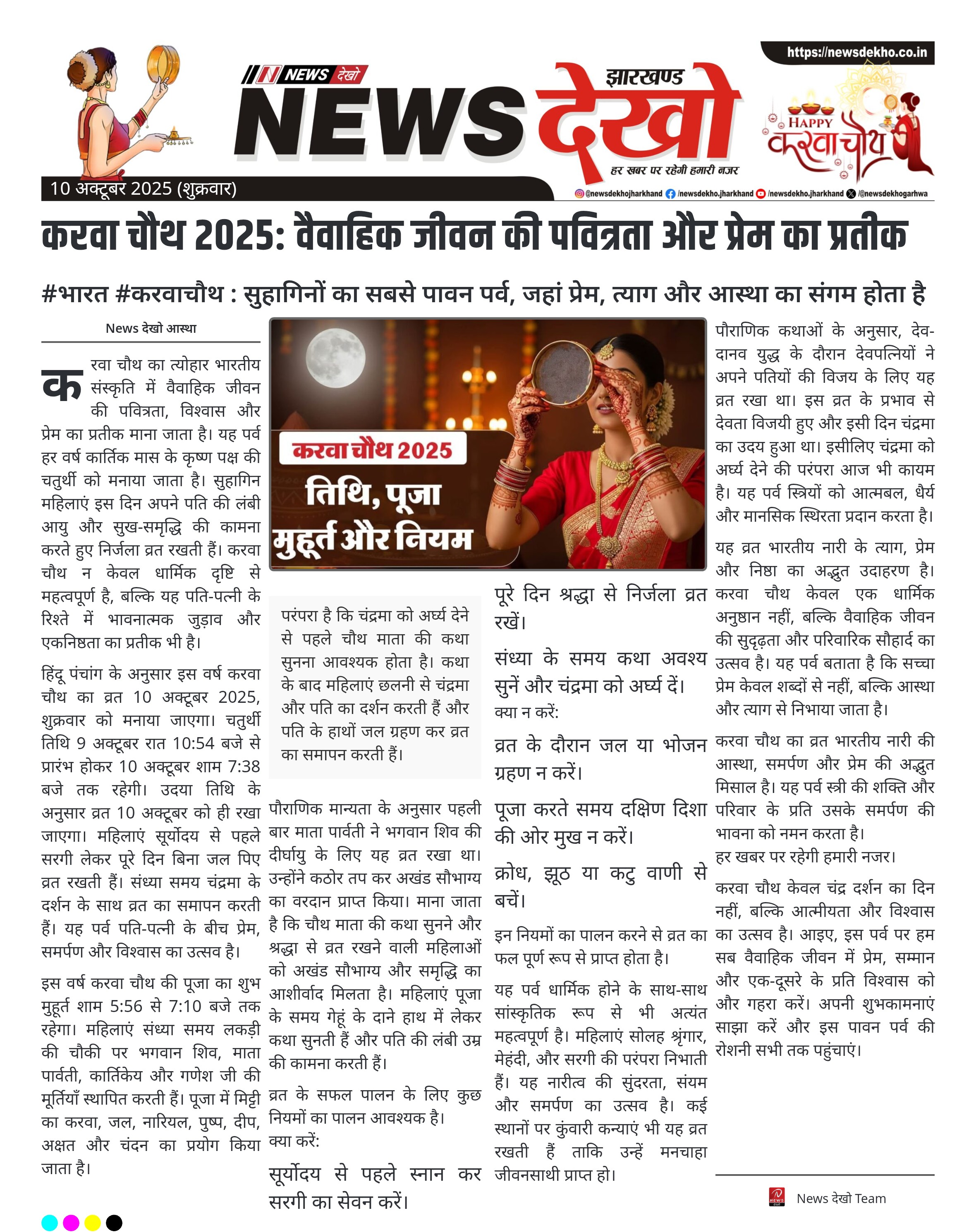 #भारत #करवाचौथ : सुहागिनों का सबसे पावन पर्व, जहां प्रेम, त्याग और आस्था का संगम होता है करवा चौथ 2025 इस वर्ष 10 अक्टूबर शुक्रवार को मनाया जाएगा। विवाहित महिलाएं पति की दीर्घायु और सौभाग्य के लिए निर्जला व्रत रखती हैं। पूजा का शुभ मुहूर्त शाम 5:56 से 7:10 बजे…