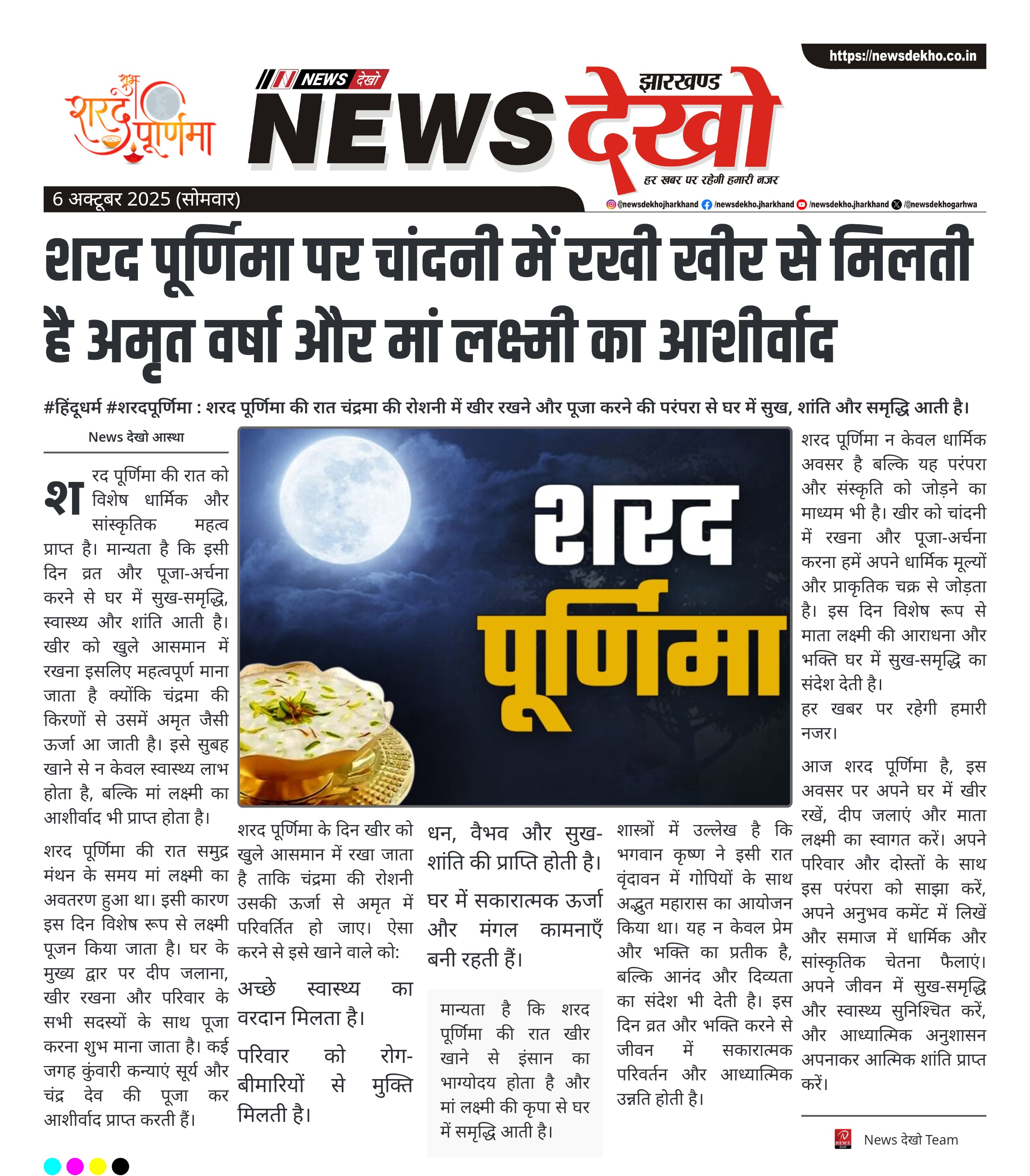 #हिंदूधर्म #शरदपूर्णिमा : शरद पूर्णिमा की रात चंद्रमा की रोशनी में खीर रखने और पूजा करने की परंपरा से घर में सुख, शांति और समृद्धि आती है। आज शरद पूर्णिमा है, जिसे हिंदू धर्म में विशेष महत्व प्राप्त है। मान्यता है कि इस रात चंद्रमा धरती के सबसे निकट होता…