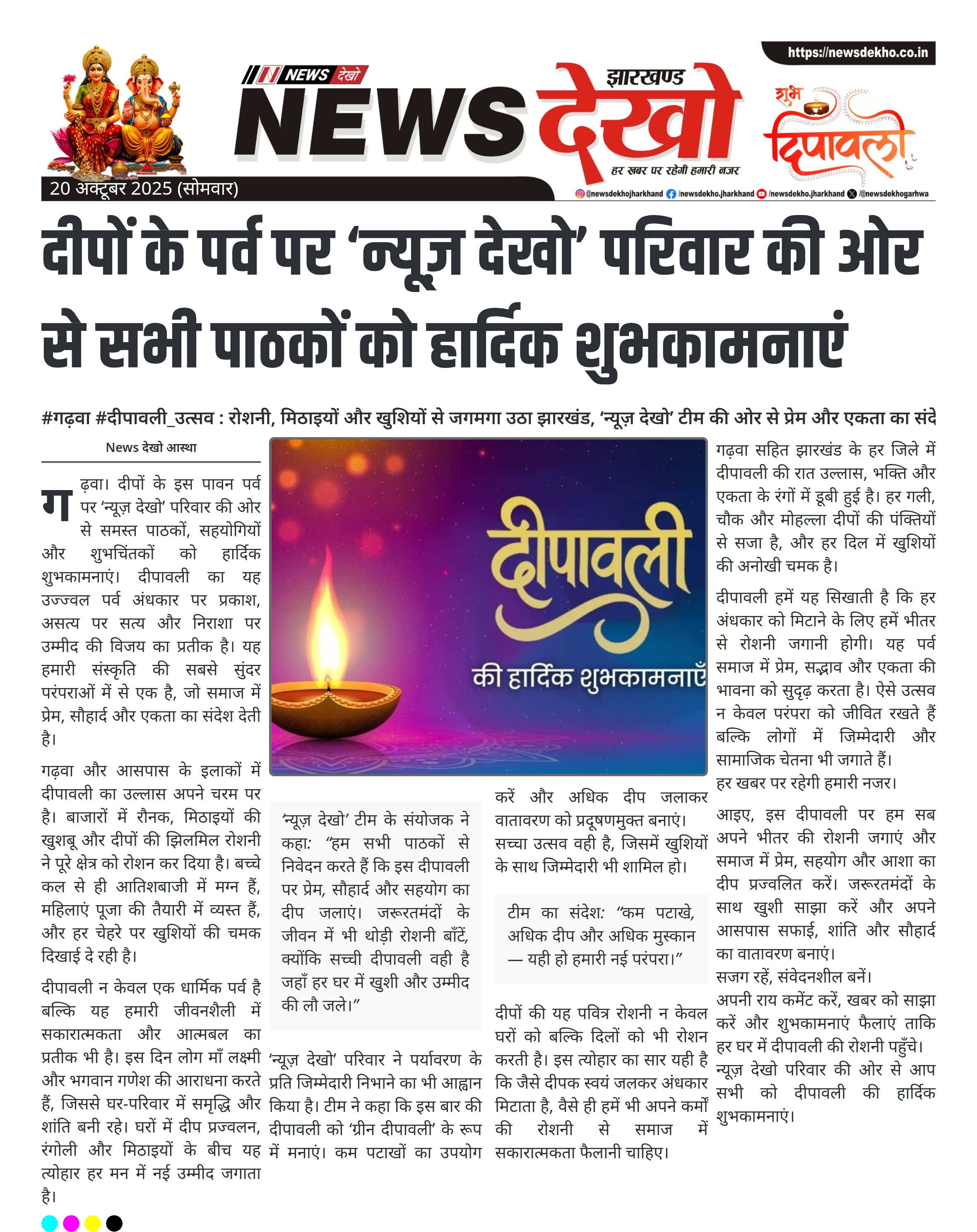 दीपों के पर्व पर ‘न्यूज़ देखो’ परिवार की ओर से सभी पाठकों को हार्दिक शुभकामनाएं