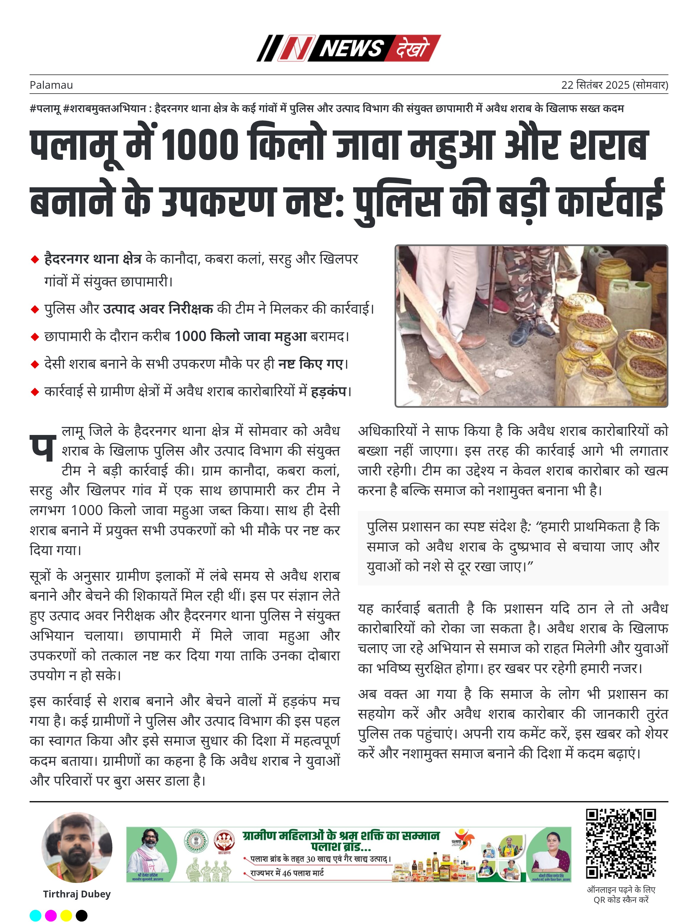 • कार्रवाई से ग्रामीण क्षेत्रों में अवैध शराब कारोबारियों में हड़कंप