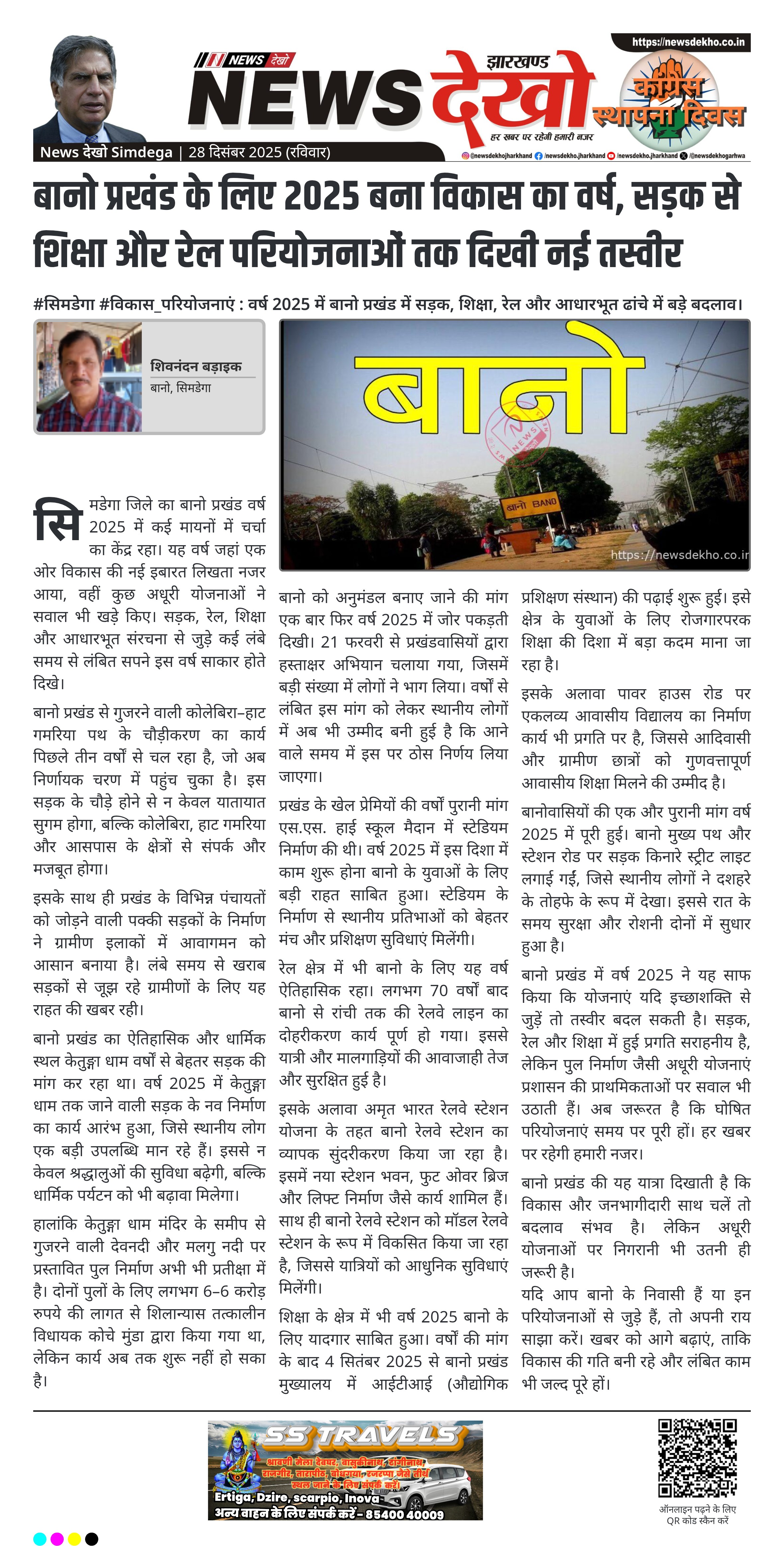 सिमडेगा जिले के बानो प्रखंड के लिए वर्ष 2025 विकास और बदलाव का वर्ष बनकर उभरा है। सड़क, रेल, शिक्षा और धार्मिक स्थलों से जुड़ी कई महत्वपूर्ण परियोजनाओं ने क्षेत्र की तस्वीर बदलनी शुरू की है। कुछ योजनाएं पूर्ण हुईं, कुछ प्रगति पर हैं, जबकि कुछ अब भी प्रतीक्षा में हैं। इन तमाम पहलुओं ने बानो को विकास के नक्शे पर नई पहचान दिलाई है।
