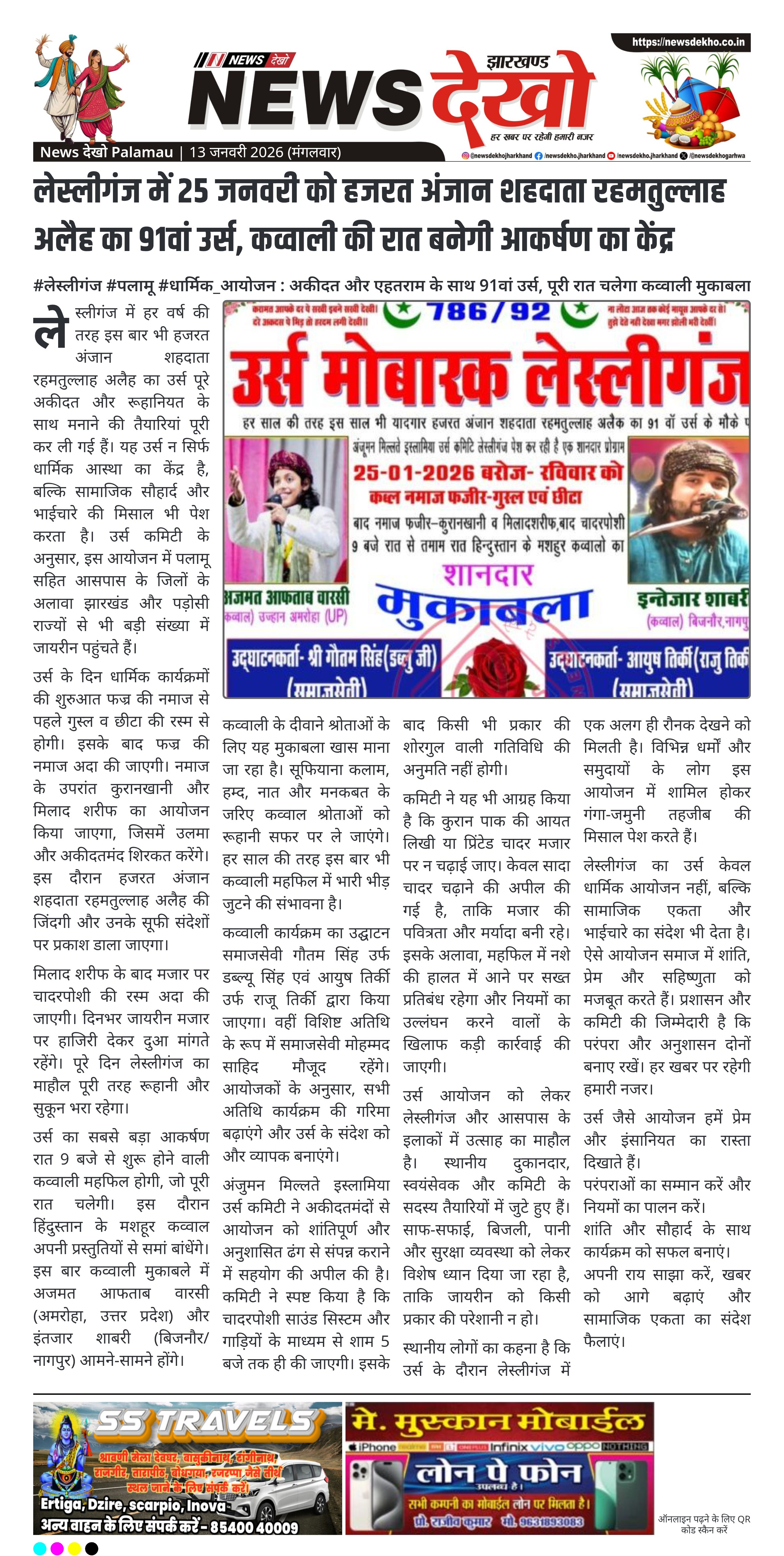- 25 जनवरी 2026 को लेस्लीगंज में आयोजित होगा 91वां उर्स।
