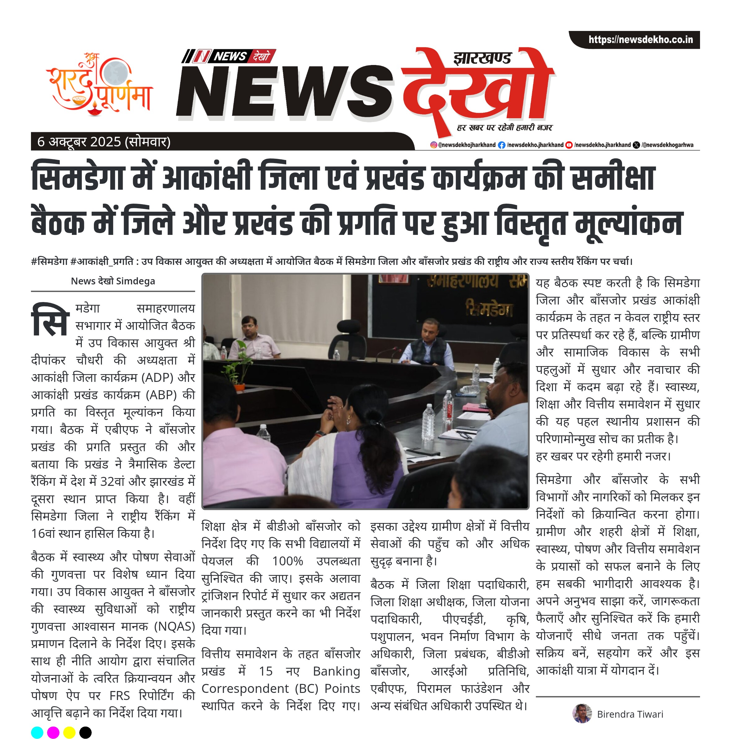 न्यूज़ देखो: सिमडेगा और बाँसजोर की आकांक्षी प्रगति पर ठोस रणनीति
