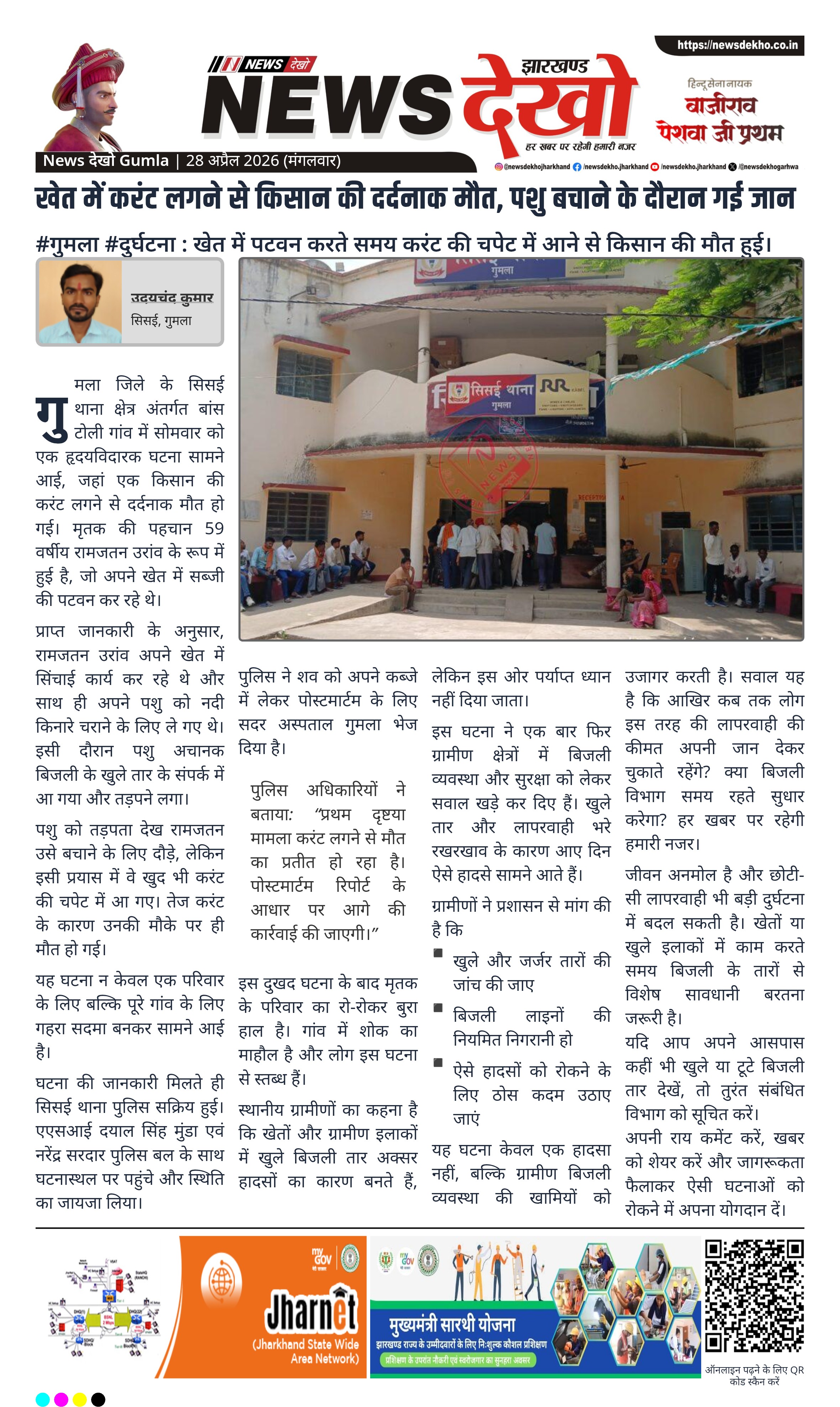 प्राप्त जानकारी के अनुसार, रामजतन उरांव अपने खेत में सिंचाई कार्य कर रहे थे और साथ ही अपने पशु को नदी किनारे चराने के लिए ले गए थे। इसी दौरान पशु अचानक बिजली के खुले तार के संपर्क में आ गया और तड़पने लगा।
