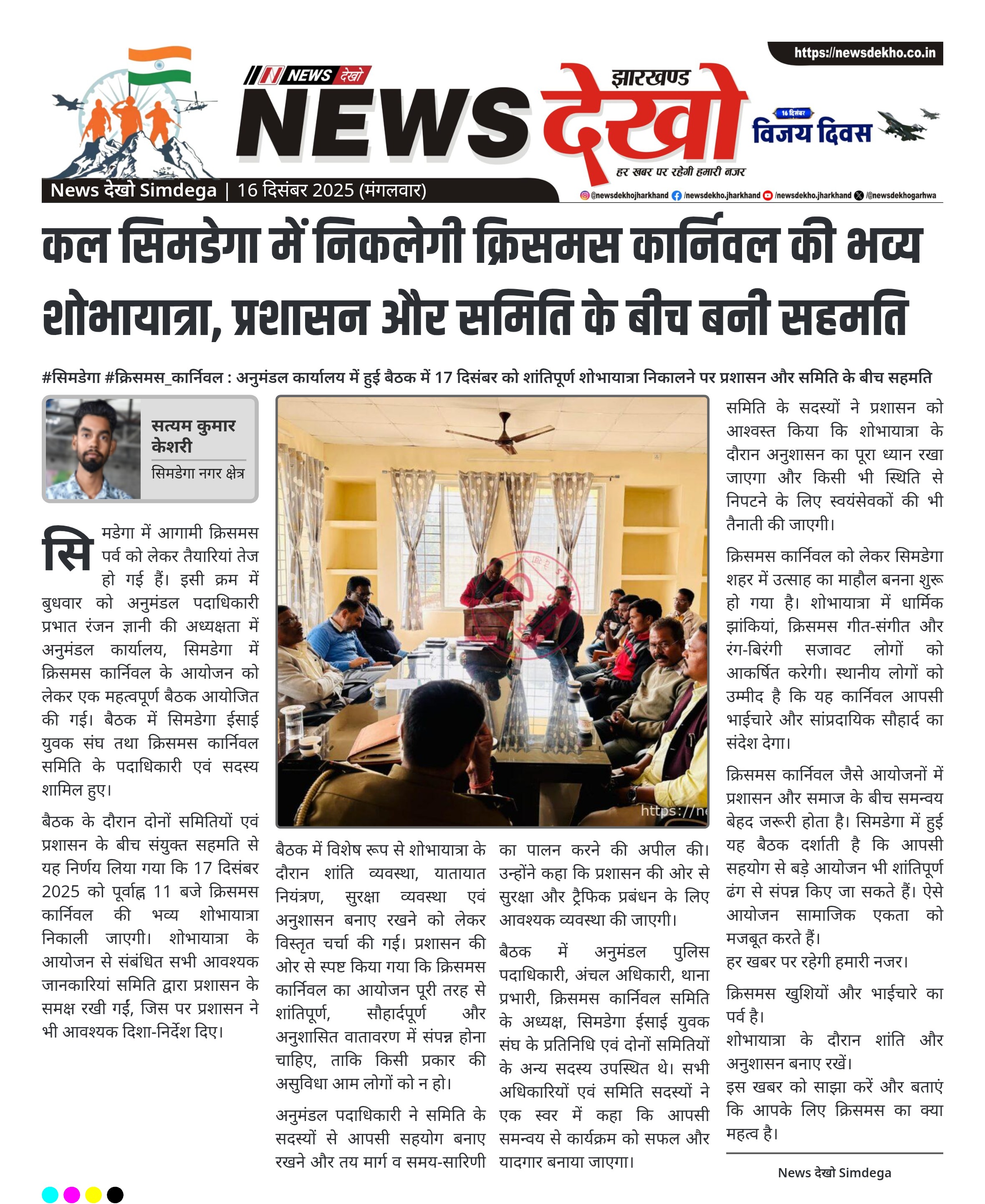 #सिमडेगा #क्रिसमस_कार्निवल : अनुमंडल कार्यालय में हुई बैठक में 17 दिसंबर को शांतिपूर्ण शोभायात्रा निकालने पर प्रशासन और समिति के बीच सहमति