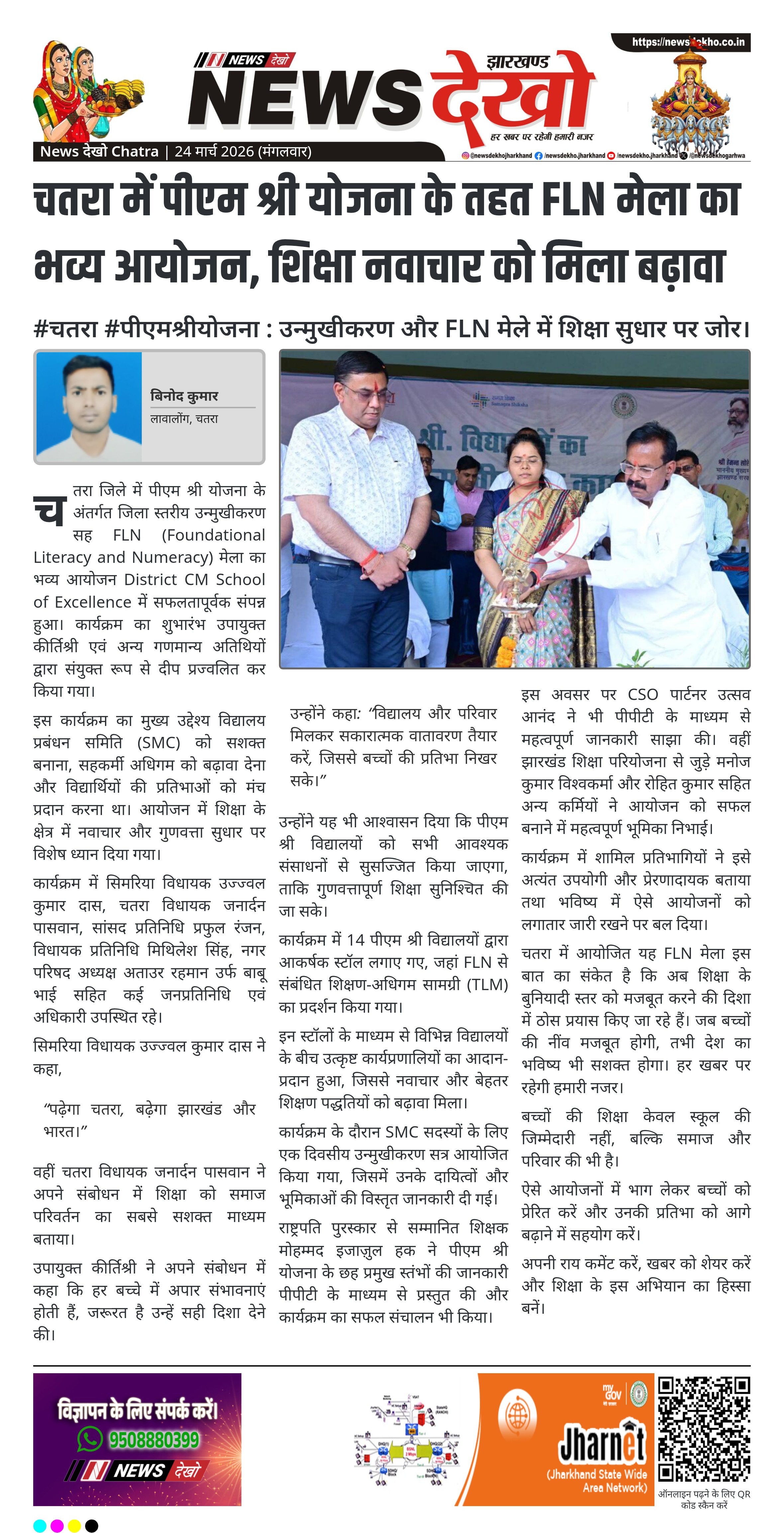 चतरा में आयोजित यह FLN मेला इस बात का संकेत है कि अब शिक्षा के बुनियादी स्तर को मजबूत करने की दिशा में ठोस प्रयास किए जा रहे हैं। जब बच्चों की नींव मजबूत होगी, तभी देश का भविष्य भी सशक्त होगा। हर खबर पर रहेगी हमारी नजर।