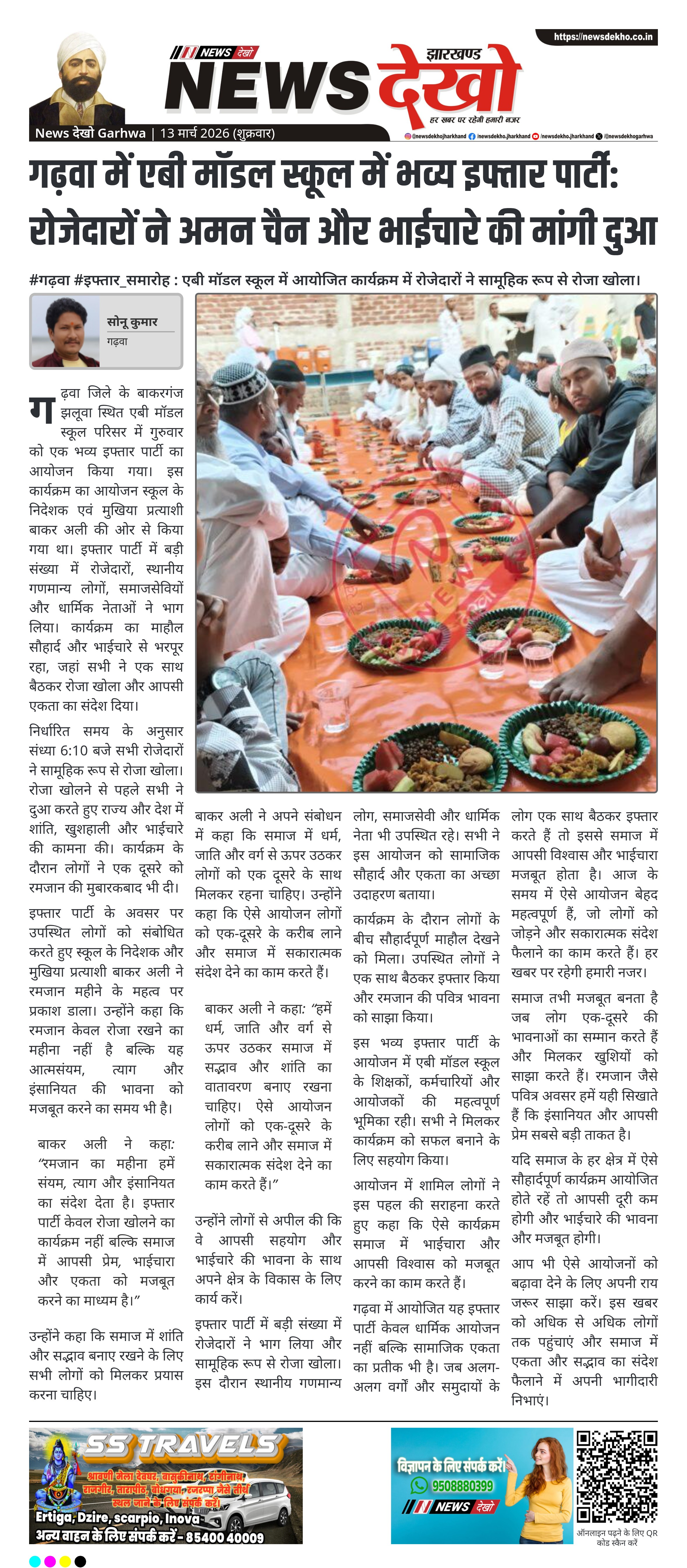 गढ़वा में एबी मॉडल स्कूल में भव्य इफ्तार पार्टी: रोजेदारों ने अमन चैन और भाईचारे की मांगी दुआ