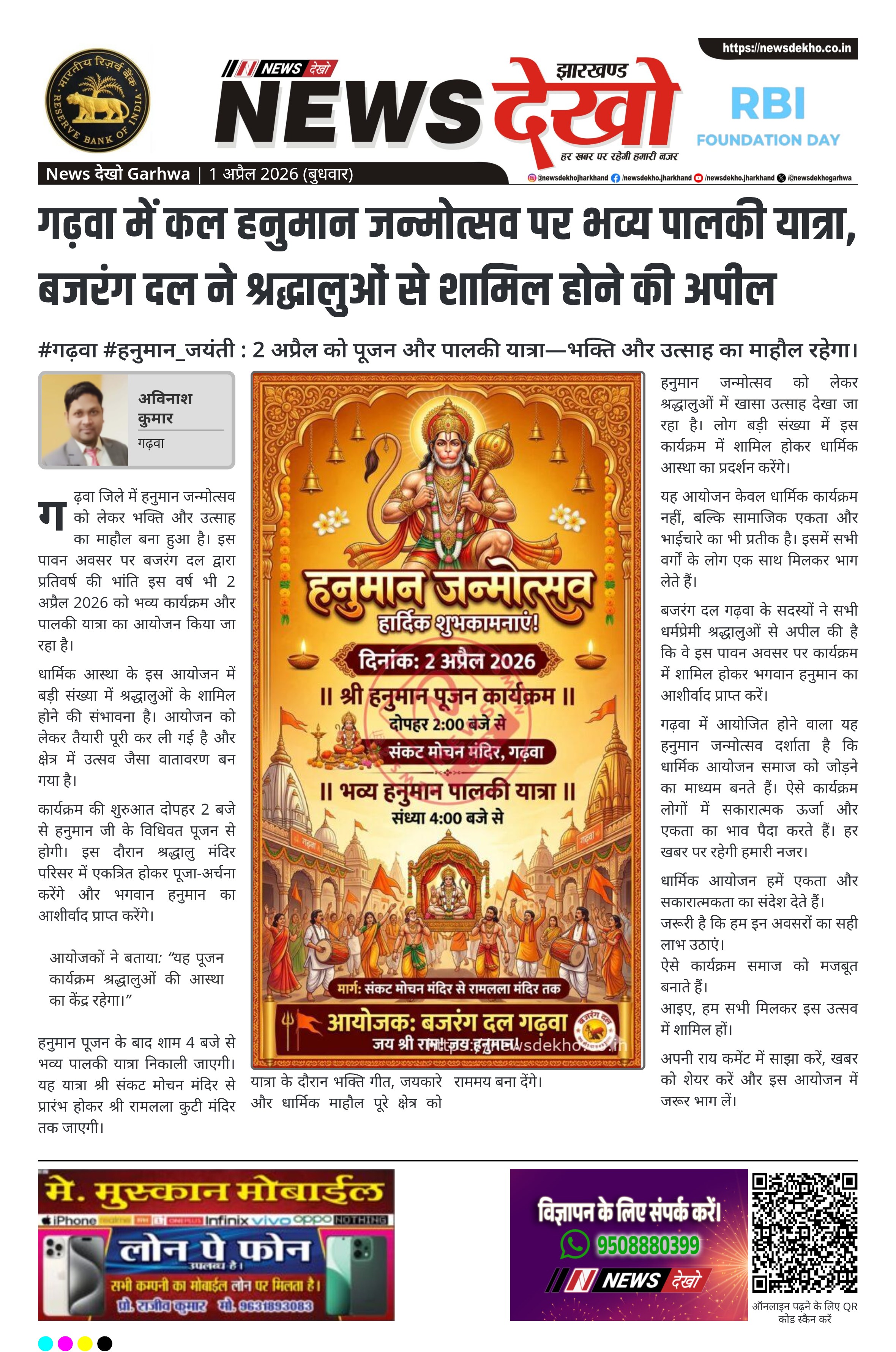 #गढ़वा #हनुमान_जयंती : 2 अप्रैल को पूजन और पालकी यात्रा—भक्ति और उत्साह का माहौल रहेगा।