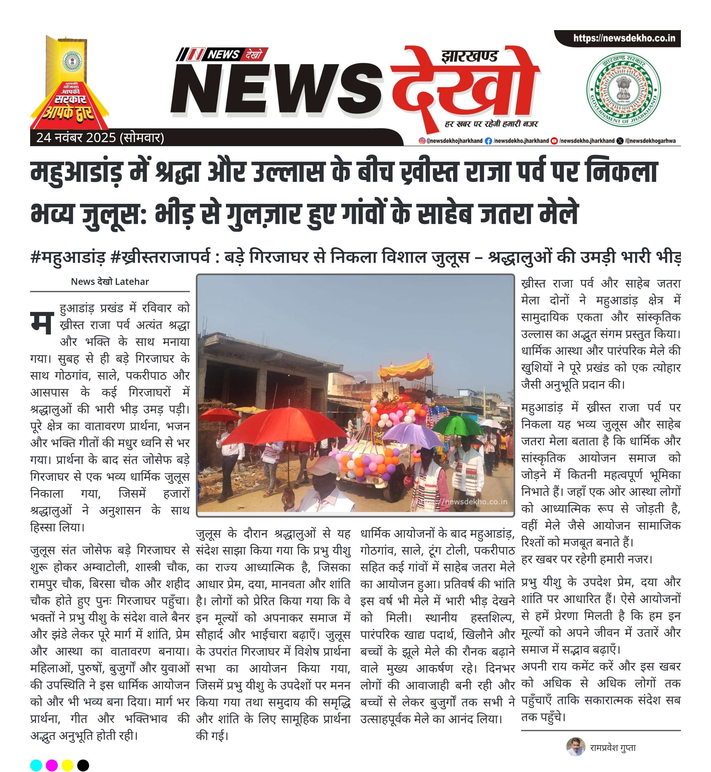 • चर्च परिसरों में साहेब जतरा मेला लगा, जहाँ भीड़ उमड़ी रही।