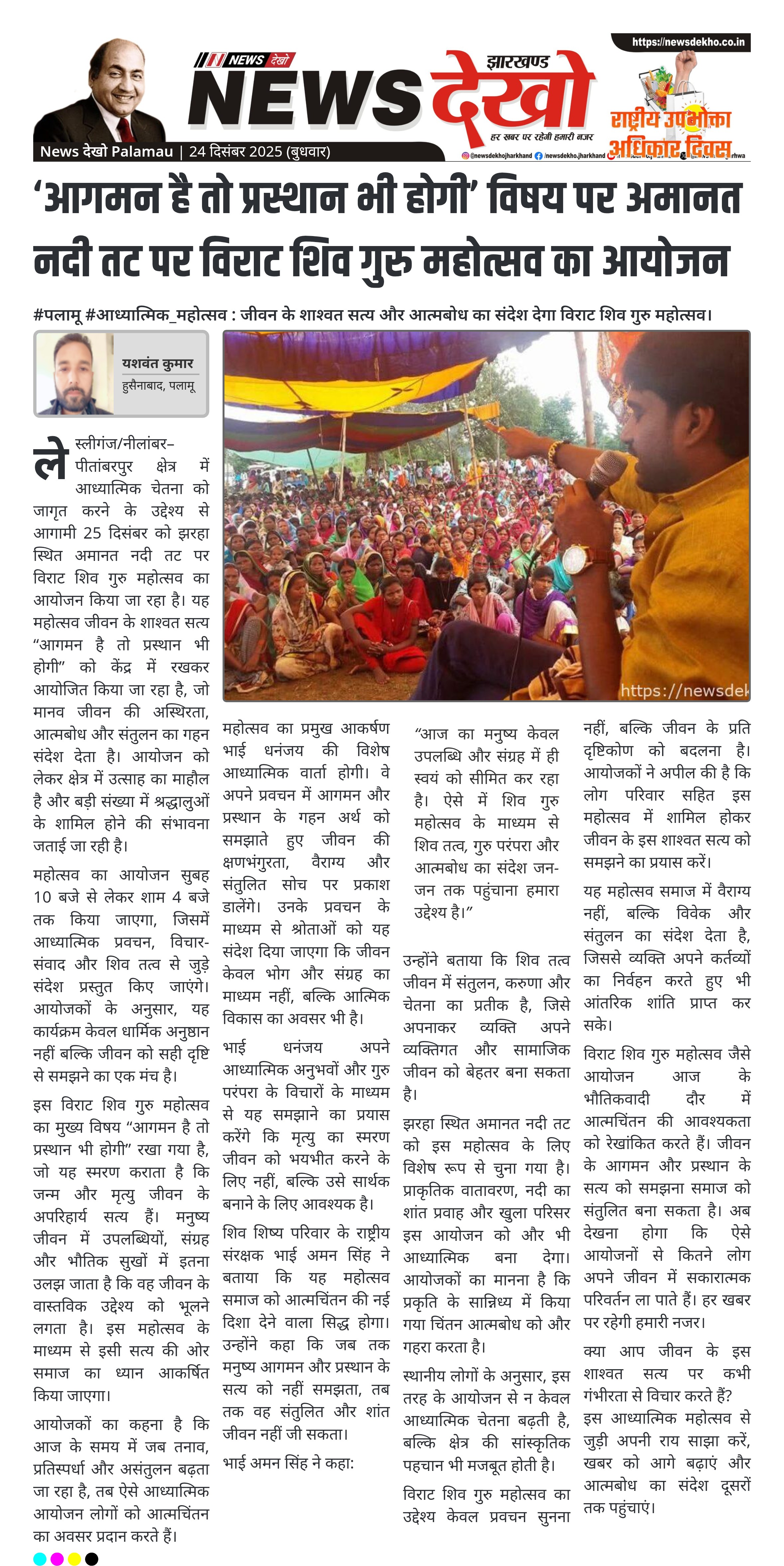 #पलामू #आध्यात्मिक_महोत्सव : जीवन के शाश्वत सत्य और आत्मबोध का संदेश देगा विराट शिव गुरु महोत्सव।