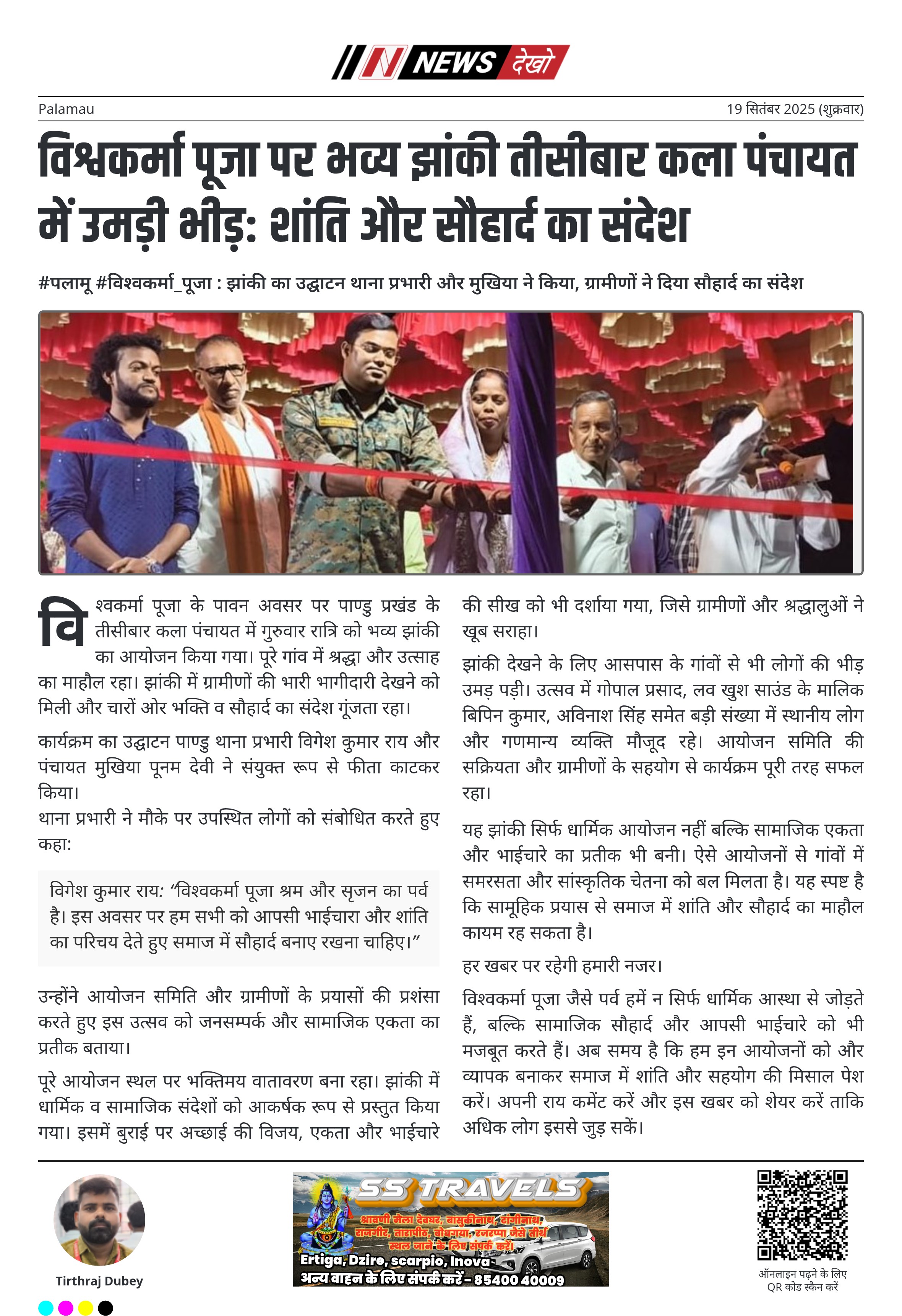 #पलामू #विश्वकर्मा_पूजा : झांकी का उद्घाटन थाना प्रभारी और मुखिया ने किया, ग्रामीणों ने दिया सौहार्द का संदेश