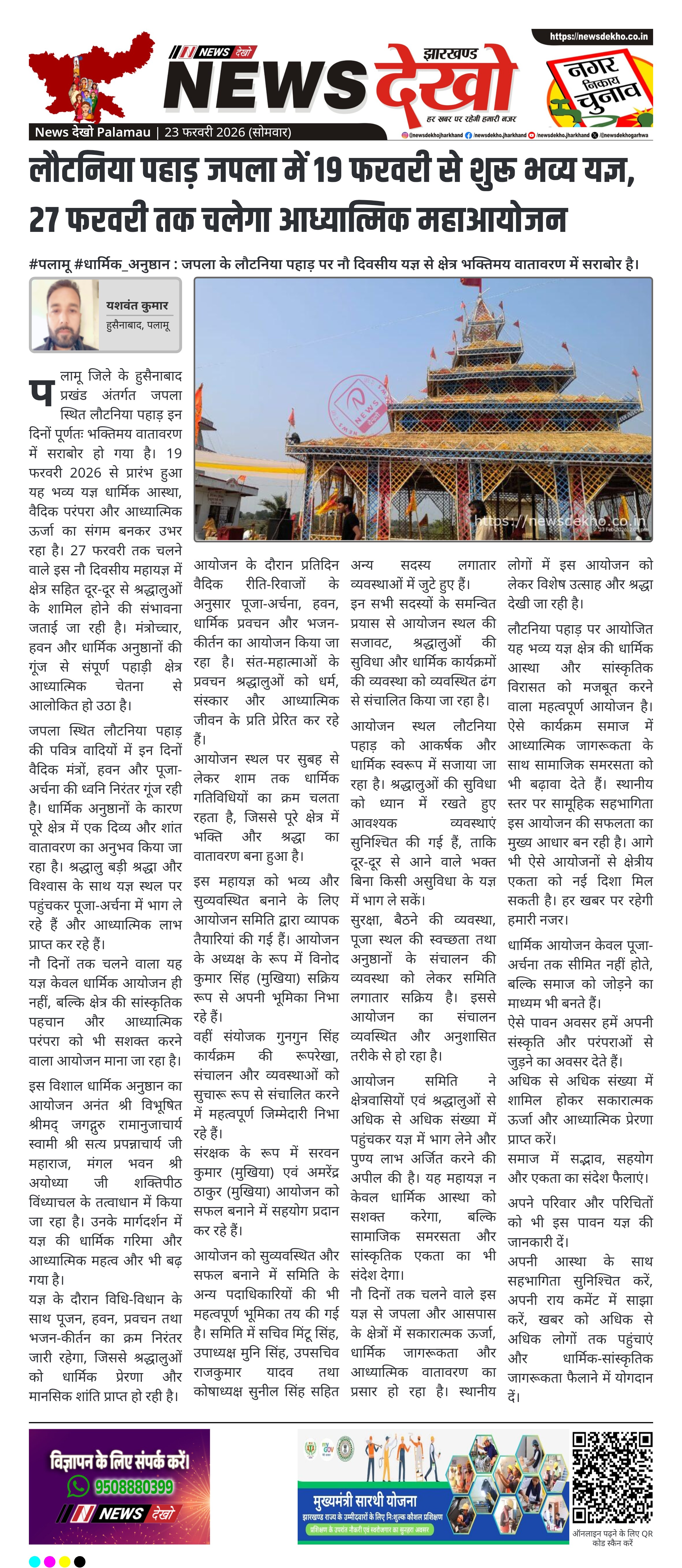 - लौटनिया पहाड़, जपला में 19 फरवरी 2026 से भव्य यज्ञ का शुभारंभ।