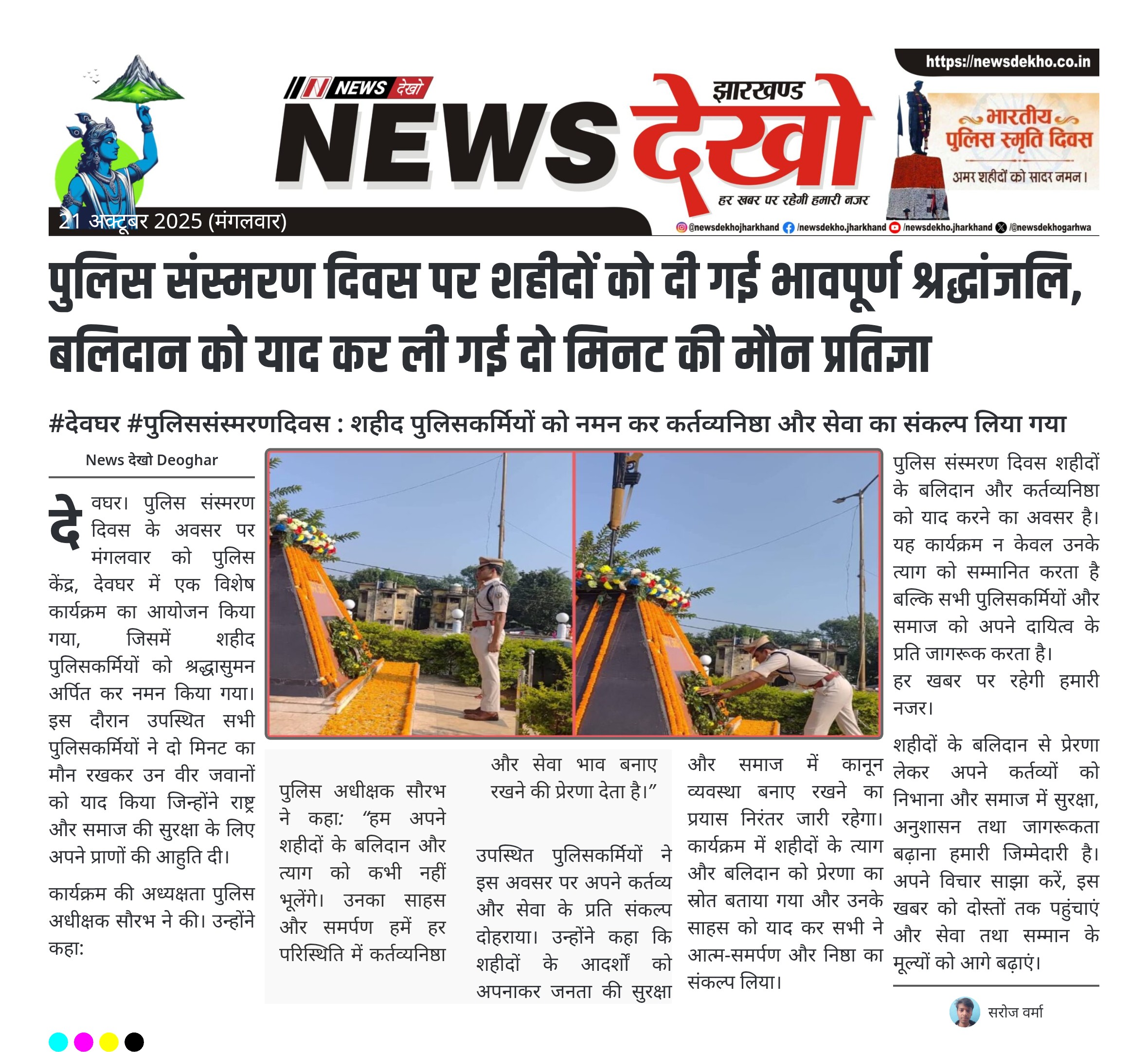 #देवघर #पुलिससंस्मरणदिवस : शहीद पुलिसकर्मियों को नमन कर कर्तव्यनिष्ठा और सेवा का संकल्प लिया गया