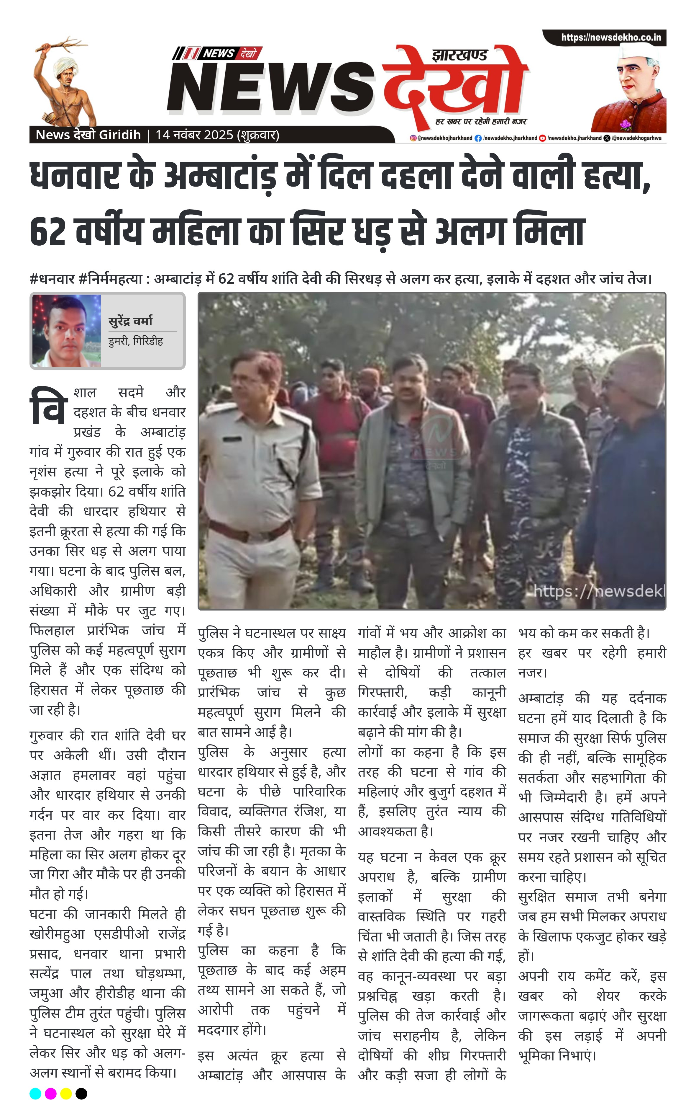#धनवार #निर्ममहत्या : अम्बाटांड़ में 62 वर्षीय शांति देवी की सिरधड़ से अलग कर हत्या, इलाके में दहशत और जांच तेज।