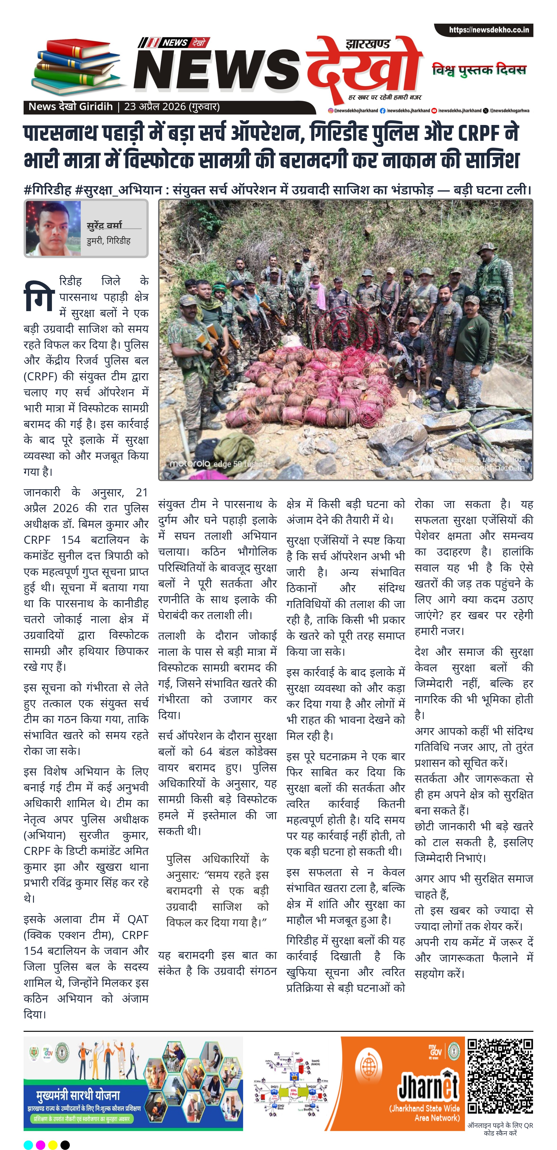 #गिरिडीह #सुरक्षा_अभियान : संयुक्त सर्च ऑपरेशन में उग्रवादी साजिश का भंडाफोड़ — बड़ी घटना टली।