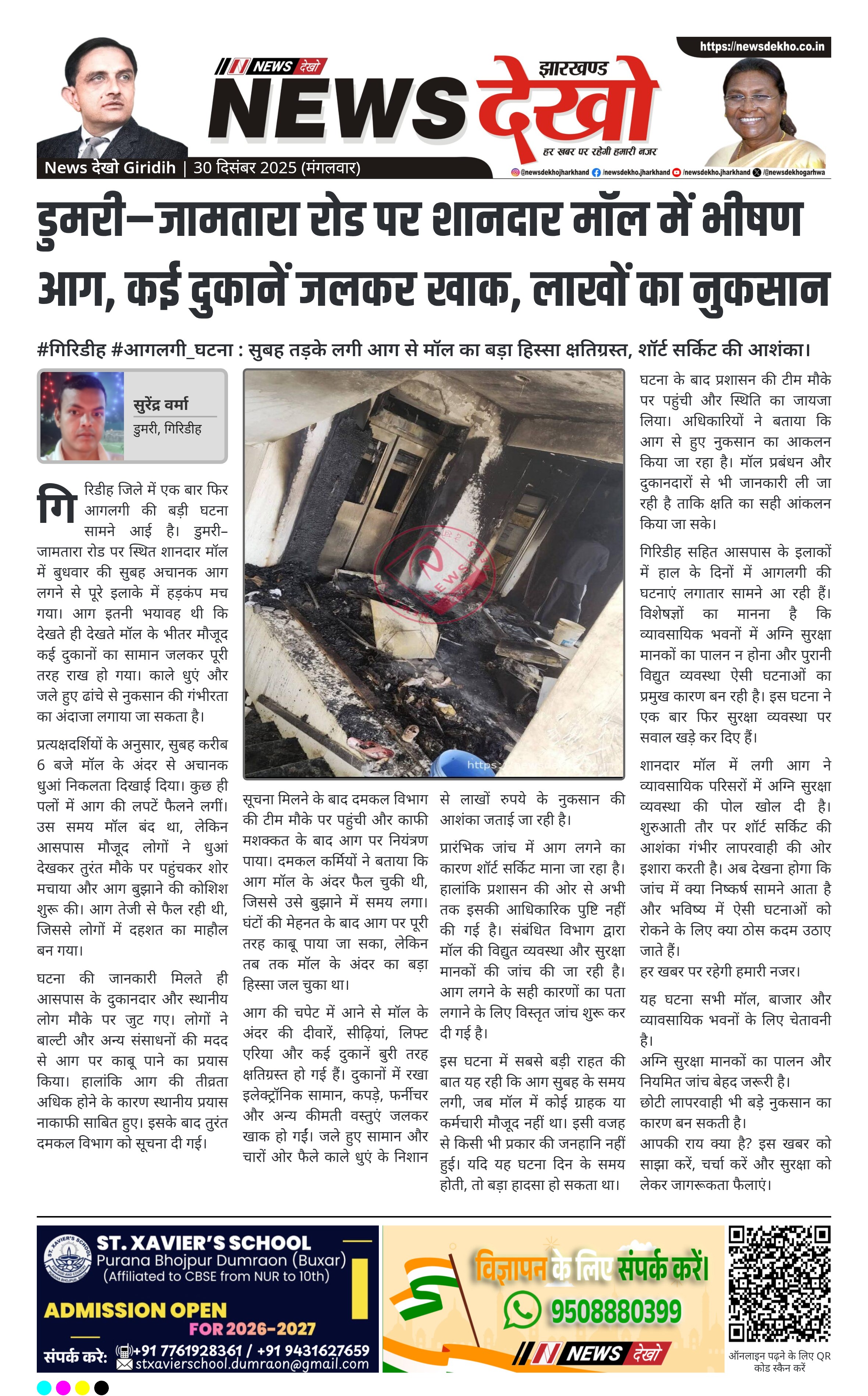 • डुमरी–जामतारा रोड स्थित शानदार मॉल में सुबह 6 बजे लगी आग।