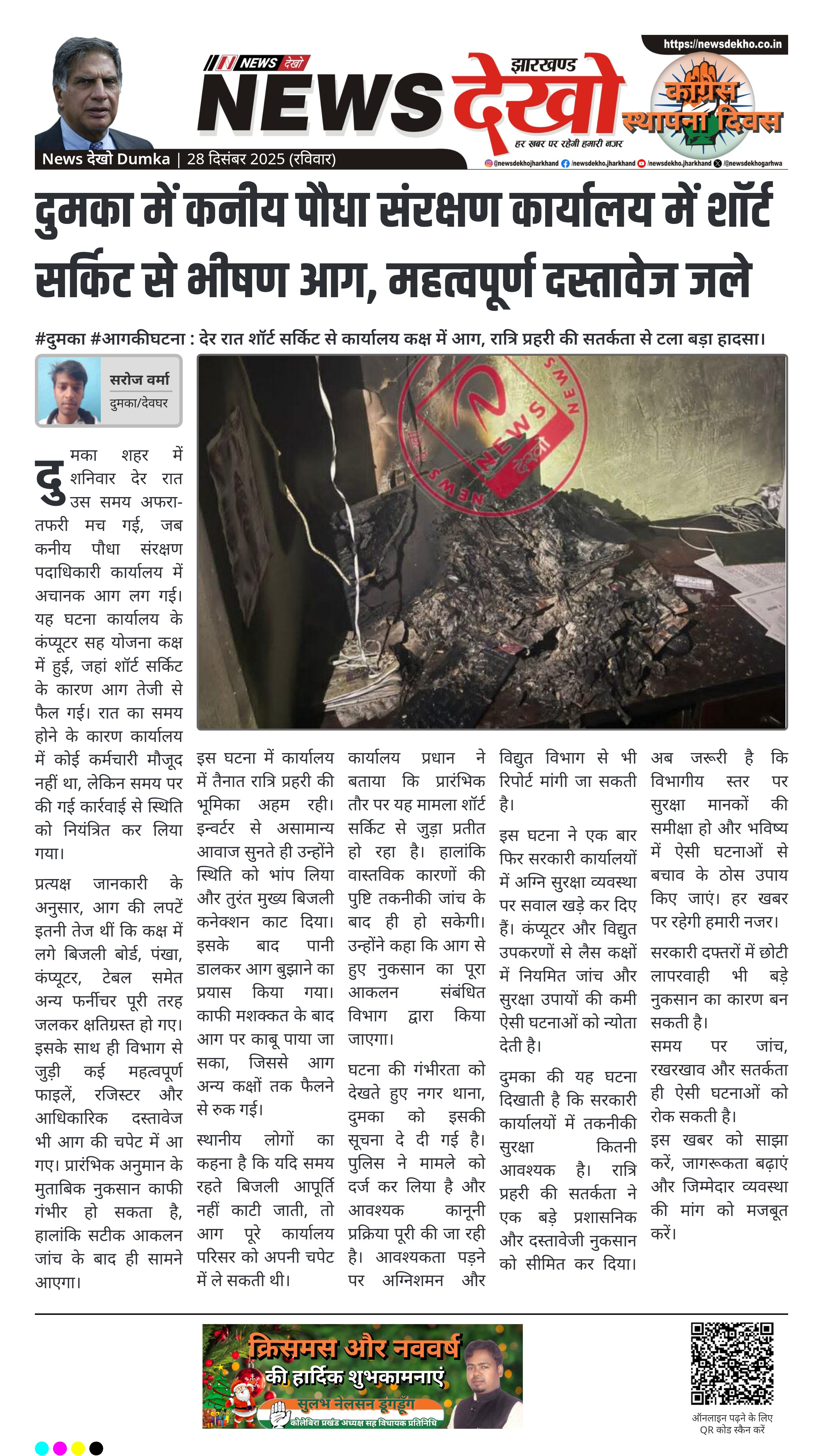#दुमका #आगकीघटना : देर रात शॉर्ट सर्किट से कार्यालय कक्ष में आग, रात्रि प्रहरी की सतर्कता से टला बड़ा हादसा।
