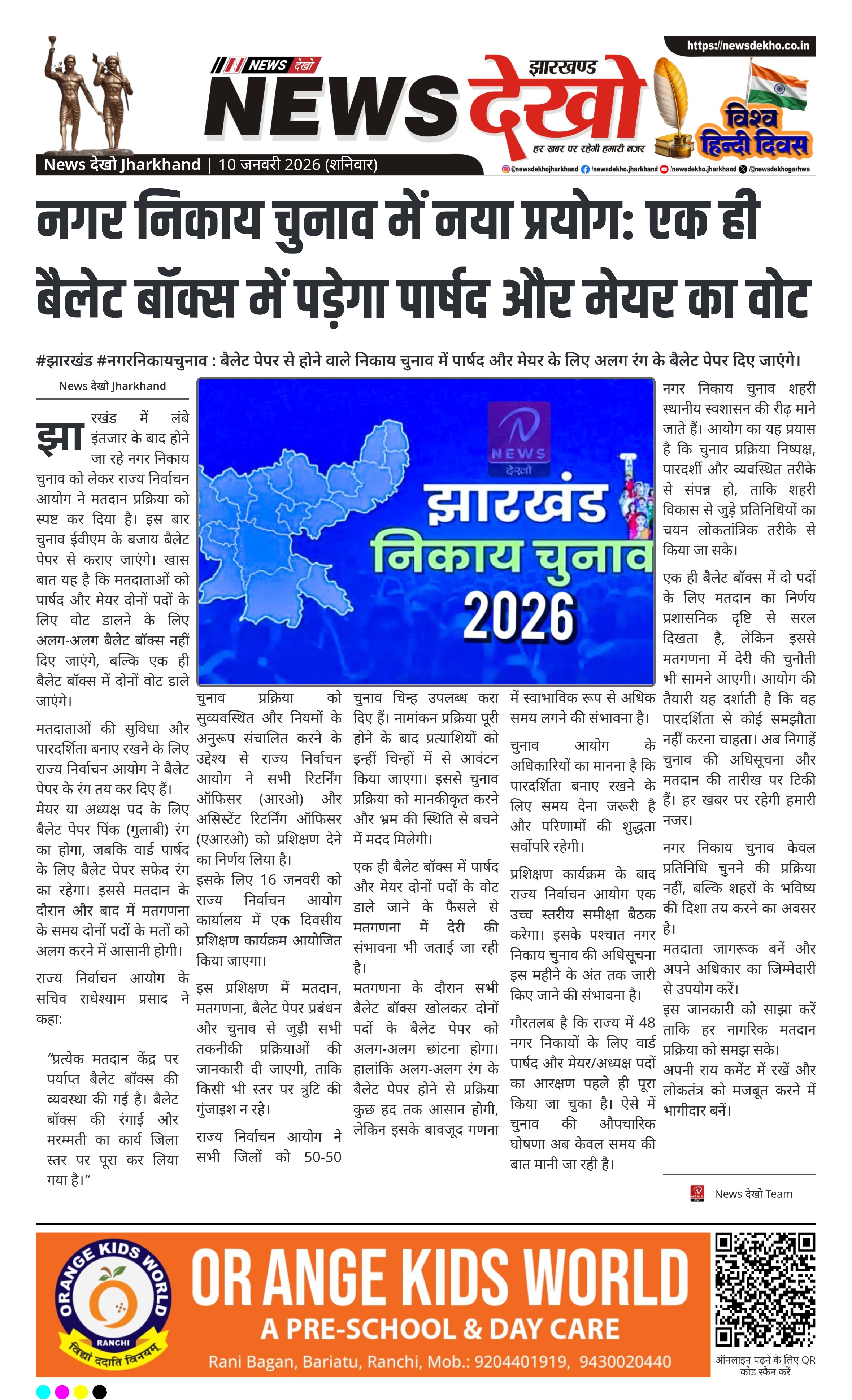 झारखंड में होने वाले नगर निकाय चुनाव को लेकर राज्य निर्वाचन आयोग ने मतदान प्रक्रिया को लेकर महत्वपूर्ण निर्णय लिया है। इस बार मतदाता पार्षद और मेयर दोनों पदों के लिए एक ही बैलेट बॉक्स में वोट डालेंगे। हालांकि भ्रम से बचने के लिए दोनों पदों के लिए अलग-अलग रंग के बैलेट पेपर उपलब्ध कराए जाएंगे। आयोग का मानना है कि इससे मतदान प्रक्रिया सरल होगी, हालांकि मतगणना में समय लग सकता है।