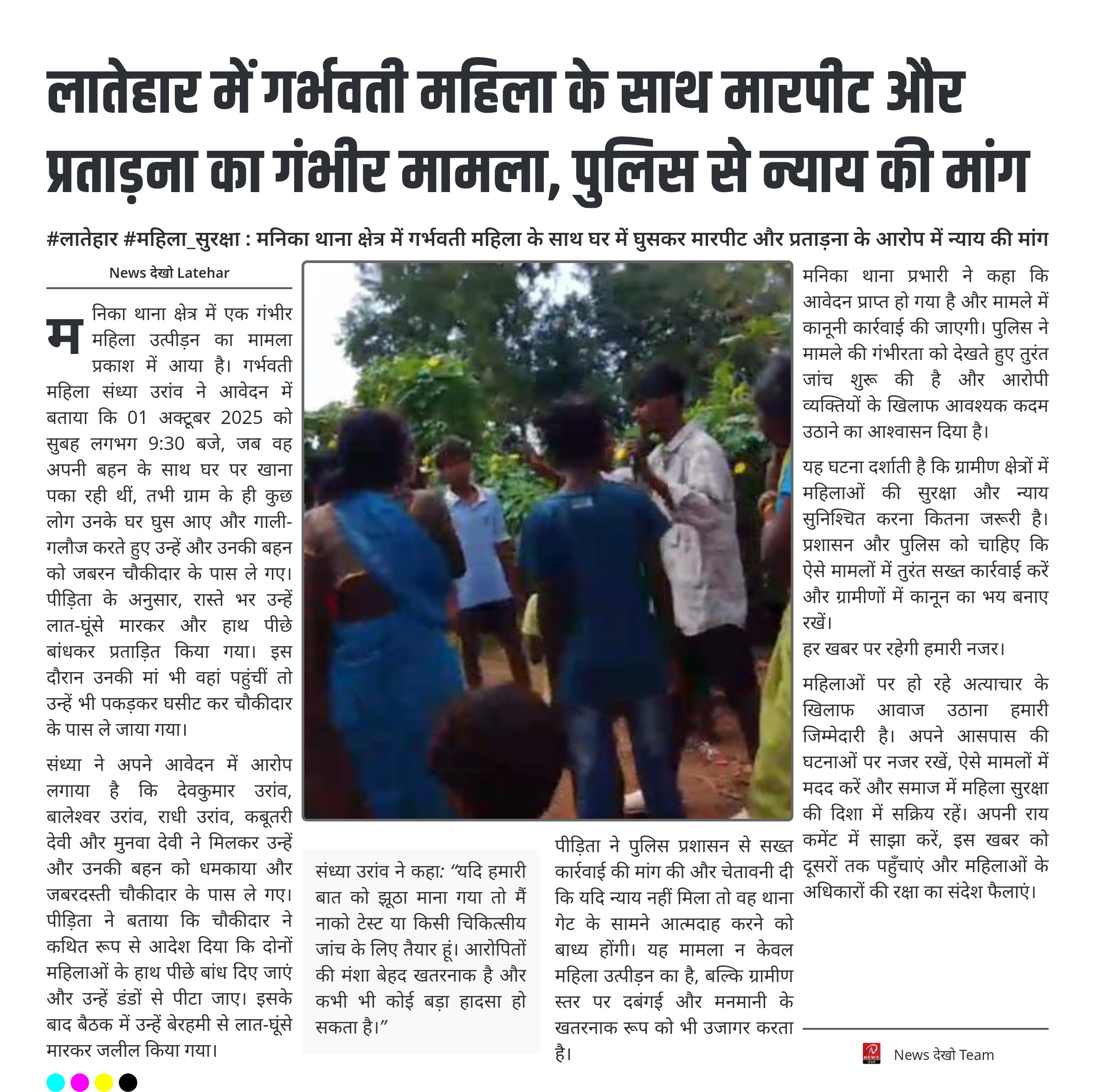 न्यूज़ देखो: महिला सुरक्षा और ग्रामीण दबंगई पर गंभीर चेतावनी