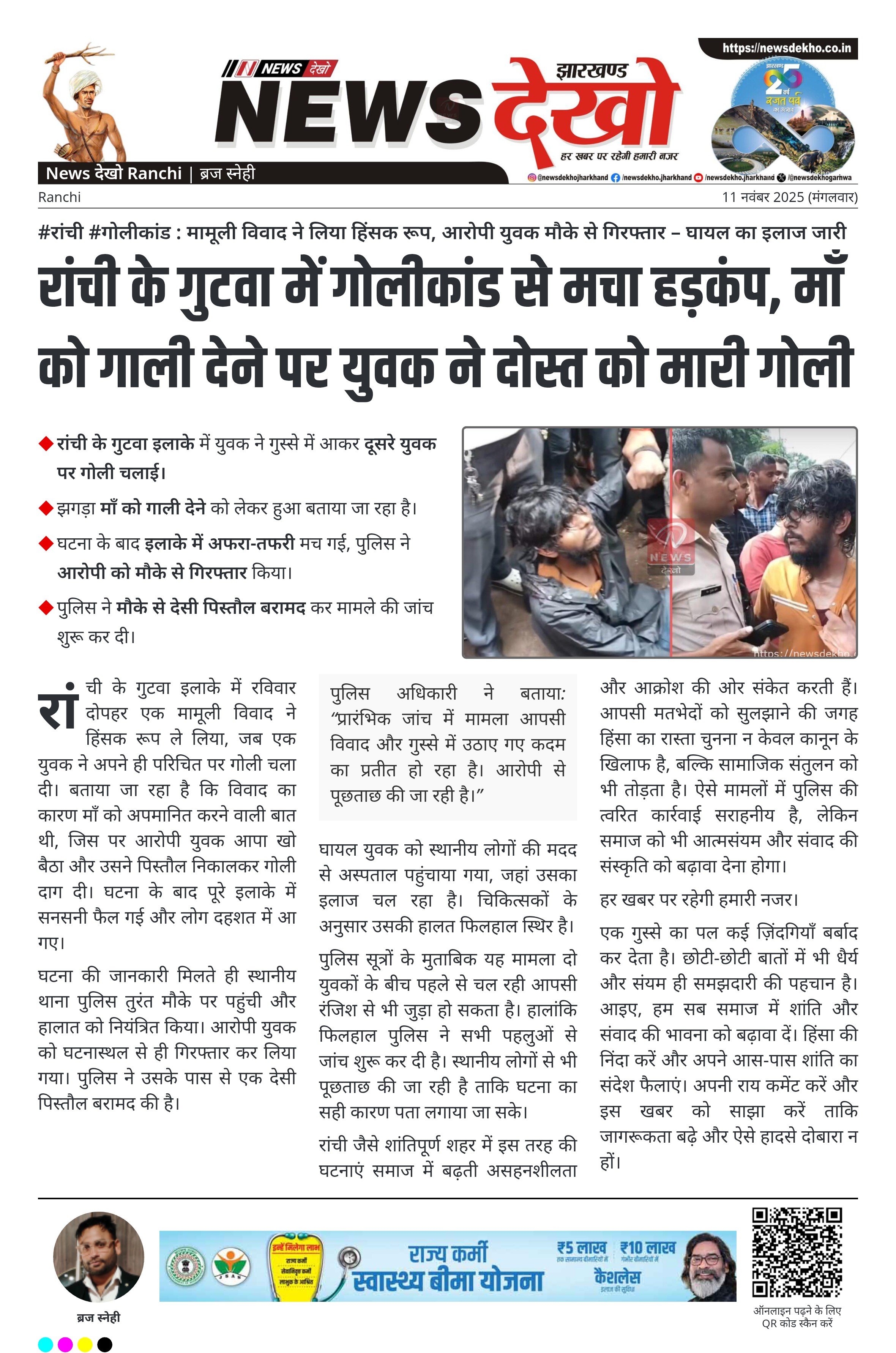 #रांची #गोलीकांड : मामूली विवाद ने लिया हिंसक रूप, आरोपी युवक मौके से गिरफ्तार – घायल का इलाज जारी