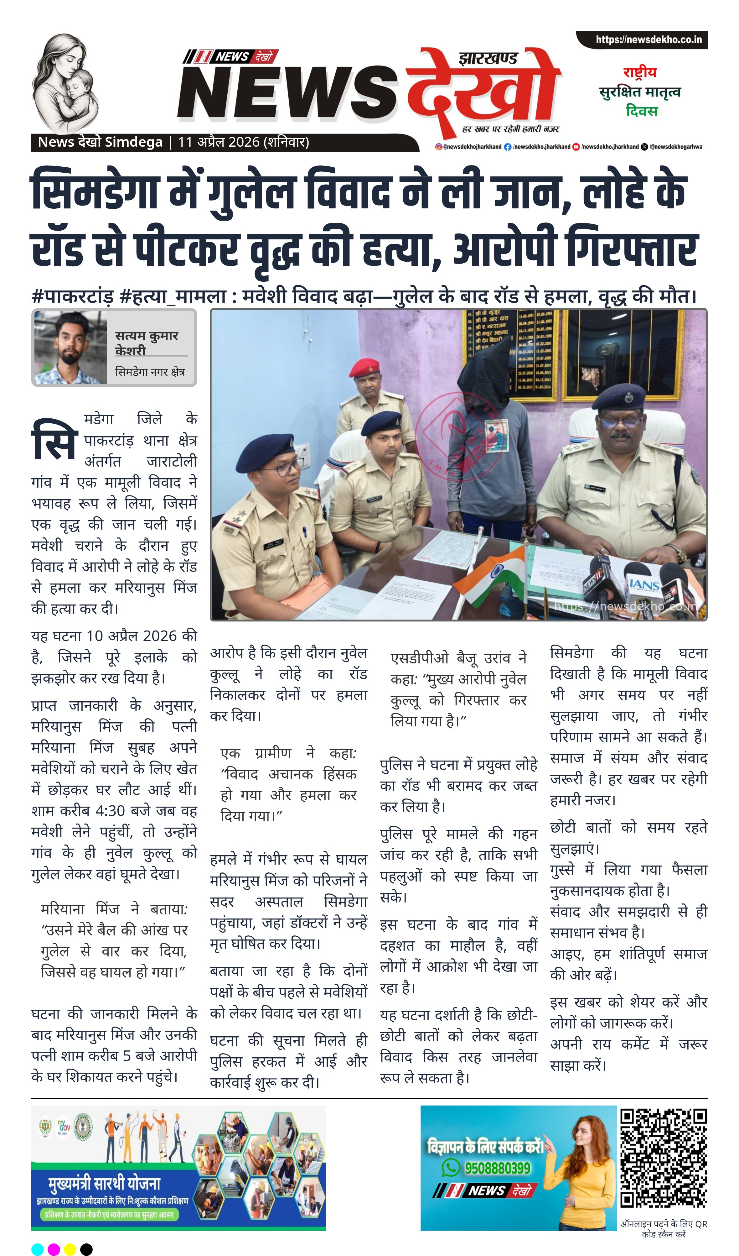सिमडेगा की यह घटना दिखाती है कि मामूली विवाद भी अगर समय पर नहीं सुलझाया जाए, तो गंभीर परिणाम सामने आ सकते हैं। समाज में संयम और संवाद जरूरी है। हर खबर पर रहेगी हमारी नजर।