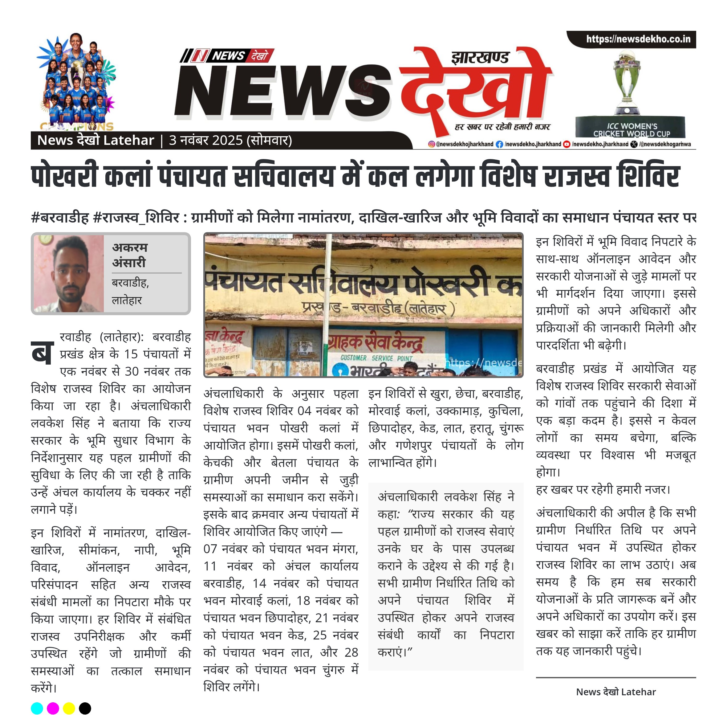- सीओ लवकेश सिंह ने ग्रामीणों से अपील की है कि वे अपने पंचायत में उपस्थित होकर लाभ उठाएं।