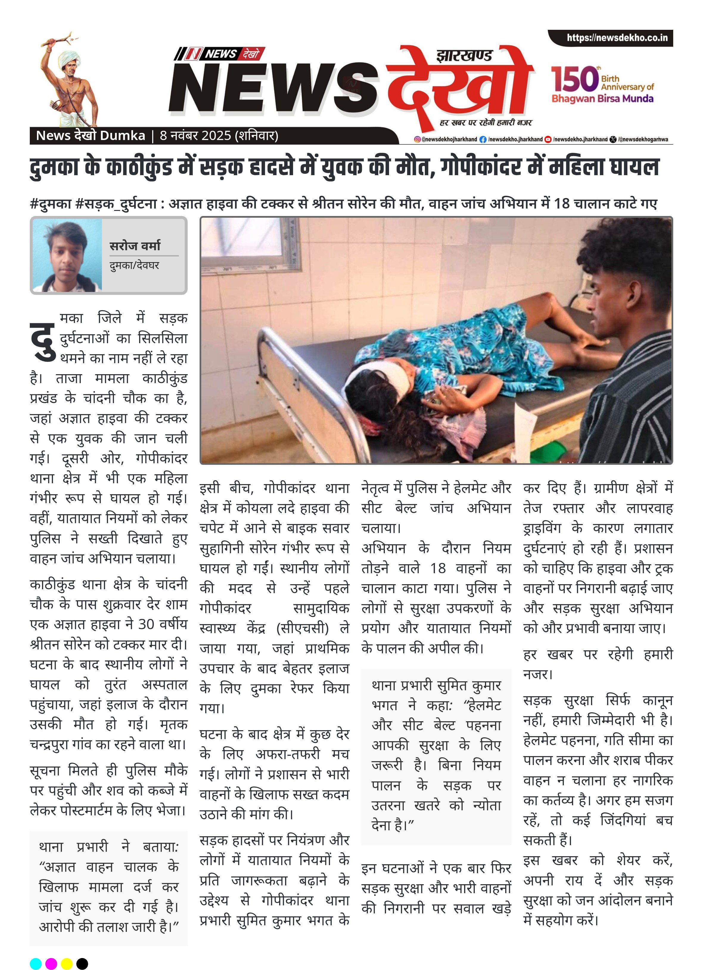 #दुमका #सड़क_दुर्घटना : अज्ञात हाइवा की टक्कर से श्रीतन सोरेन की मौत, वाहन जांच अभियान में 18 चालान काटे गए