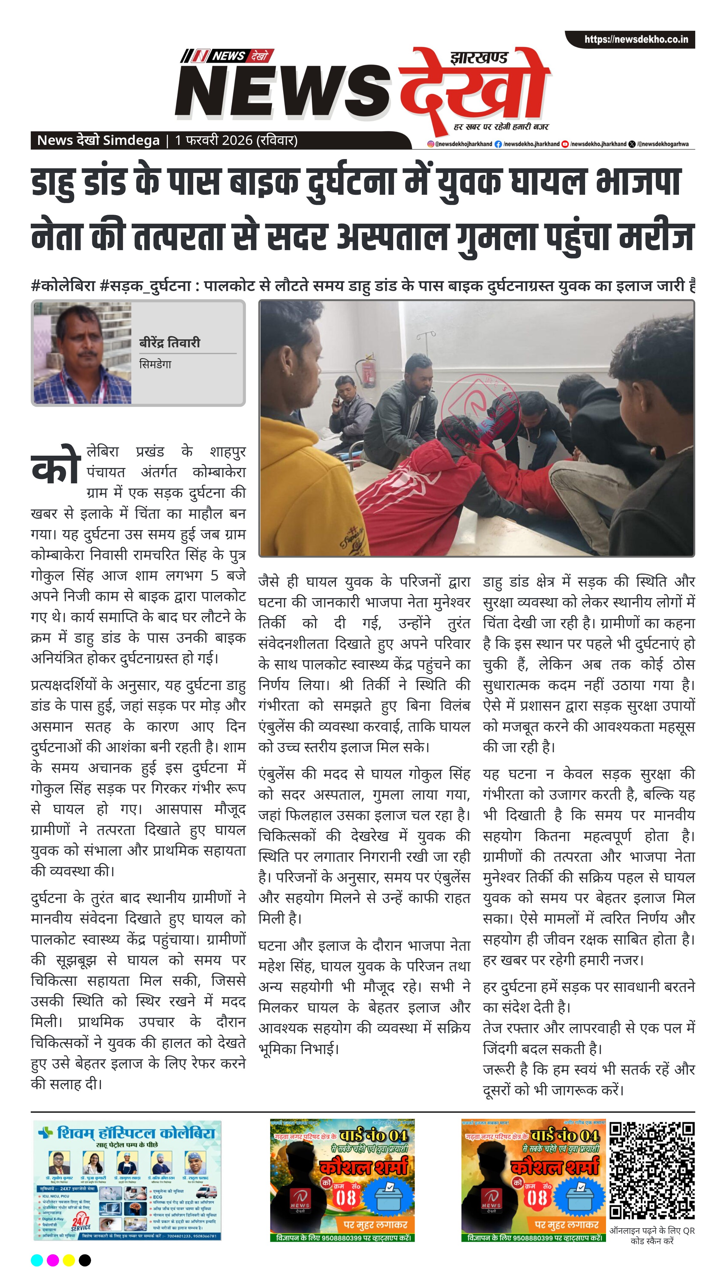 यह घटना न केवल सड़क सुरक्षा की गंभीरता को उजागर करती है, बल्कि यह भी दिखाती है कि समय पर मानवीय सहयोग कितना महत्वपूर्ण होता है। ग्रामीणों की तत्परता और भाजपा नेता मुनेश्वर तिर्की की सक्रिय पहल से घायल युवक को समय पर बेहतर इलाज मिल सका। ऐसे मामलों में त्वरित निर्णय और सहयोग ही जीवन रक्षक साबित होता है। हर खबर पर रहेगी हमारी नजर।