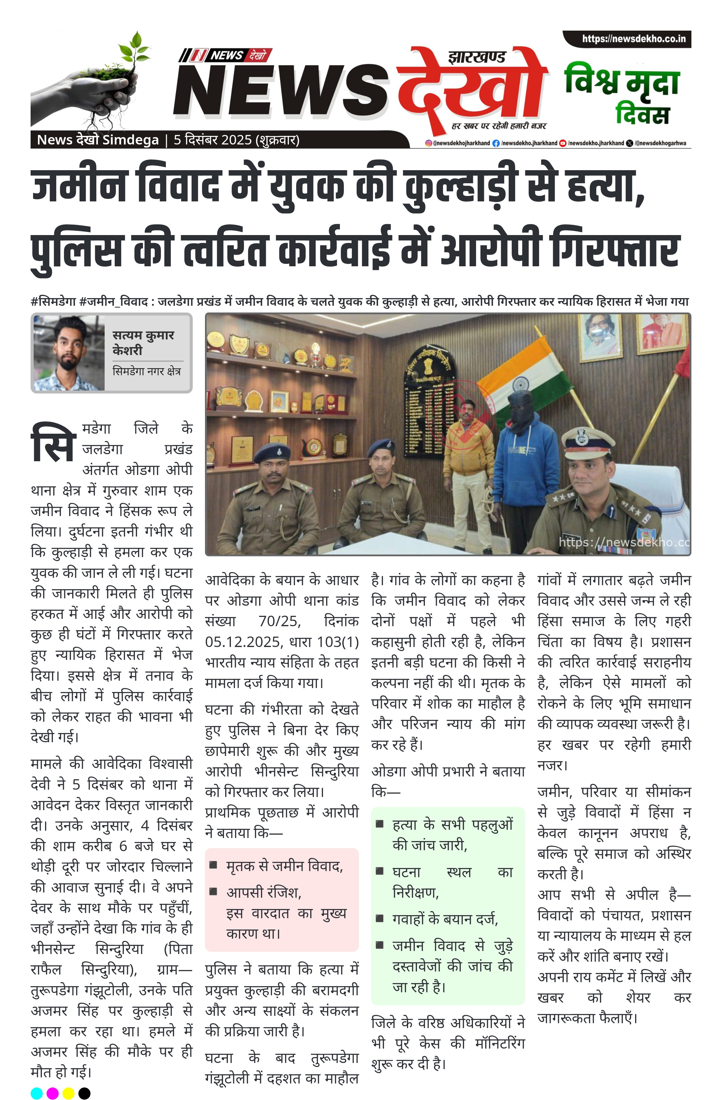 #सिमडेगा #जमीन_विवाद : जलडेगा प्रखंड में जमीन विवाद के चलते युवक की कुल्हाड़ी से हत्या, आरोपी गिरफ्तार कर न्यायिक हिरासत में भेजा गया