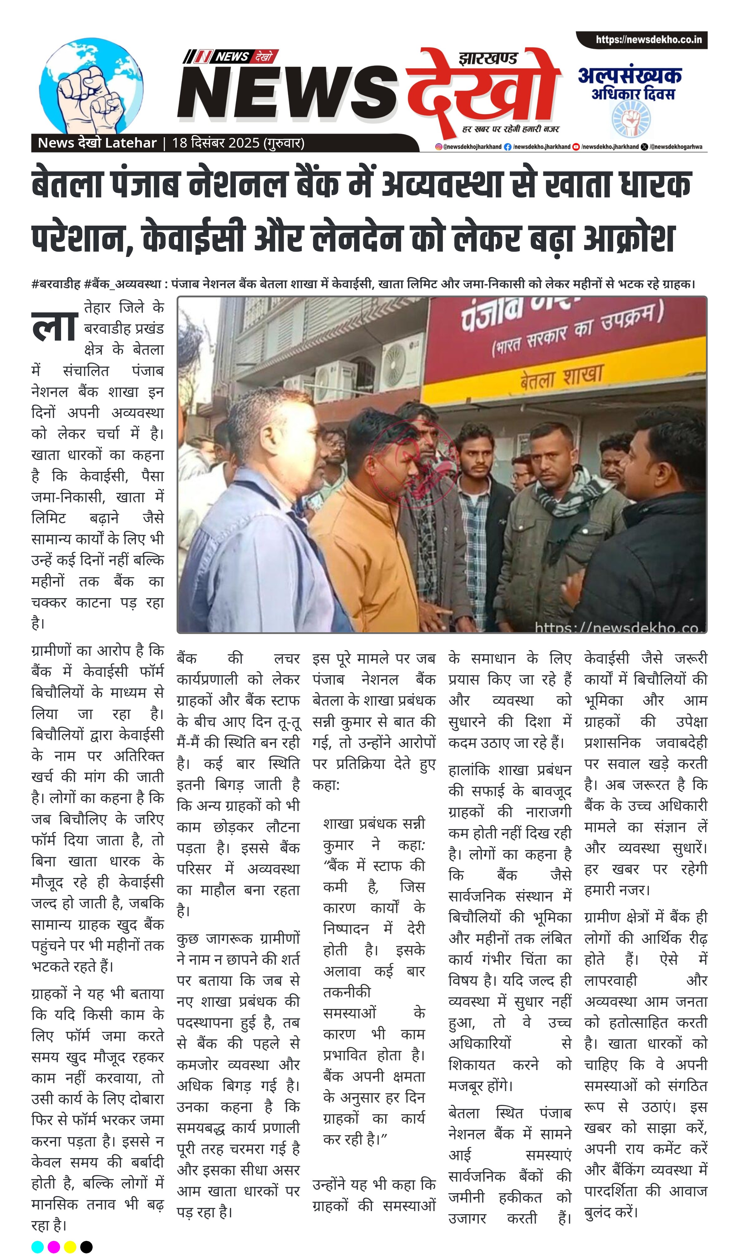 - पंजाब नेशनल बैंक बेतला में केवाईसी और लेनदेन को लेकर परेशानी।