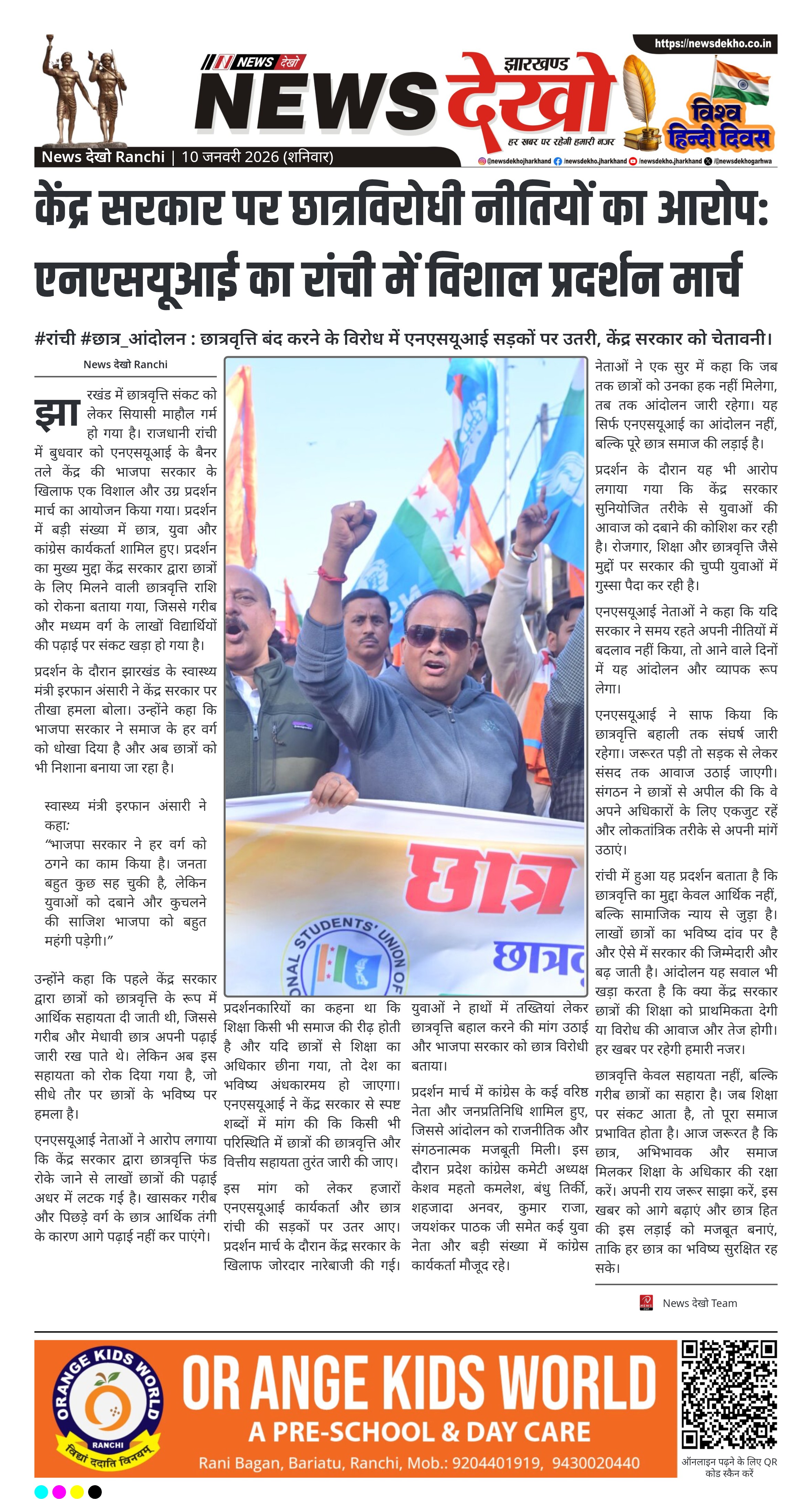 - रांची की सड़कों पर हजारों छात्र और युवा कार्यकर्ता उतरे।