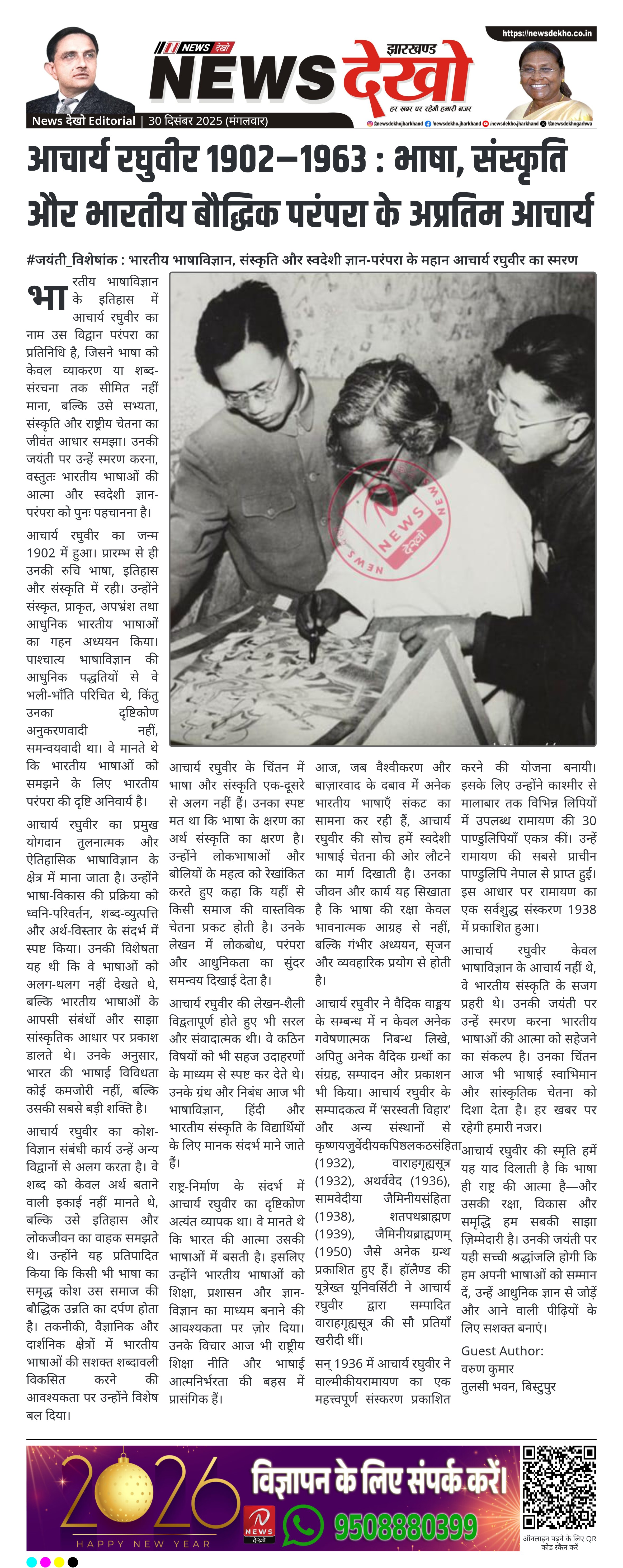 आचार्य रघुवीर केवल भाषाविज्ञान के आचार्य नहीं थे, वे भारतीय संस्कृति के सजग प्रहरी थे। उनकी जयंती पर उन्हें स्मरण करना भारतीय भाषाओं की आत्मा को सहेजने का संकल्प है। उनका चिंतन आज भी भाषाई स्वाभिमान और सांस्कृतिक चेतना को दिशा देता है। हर खबर पर रहेगी हमारी नजर।