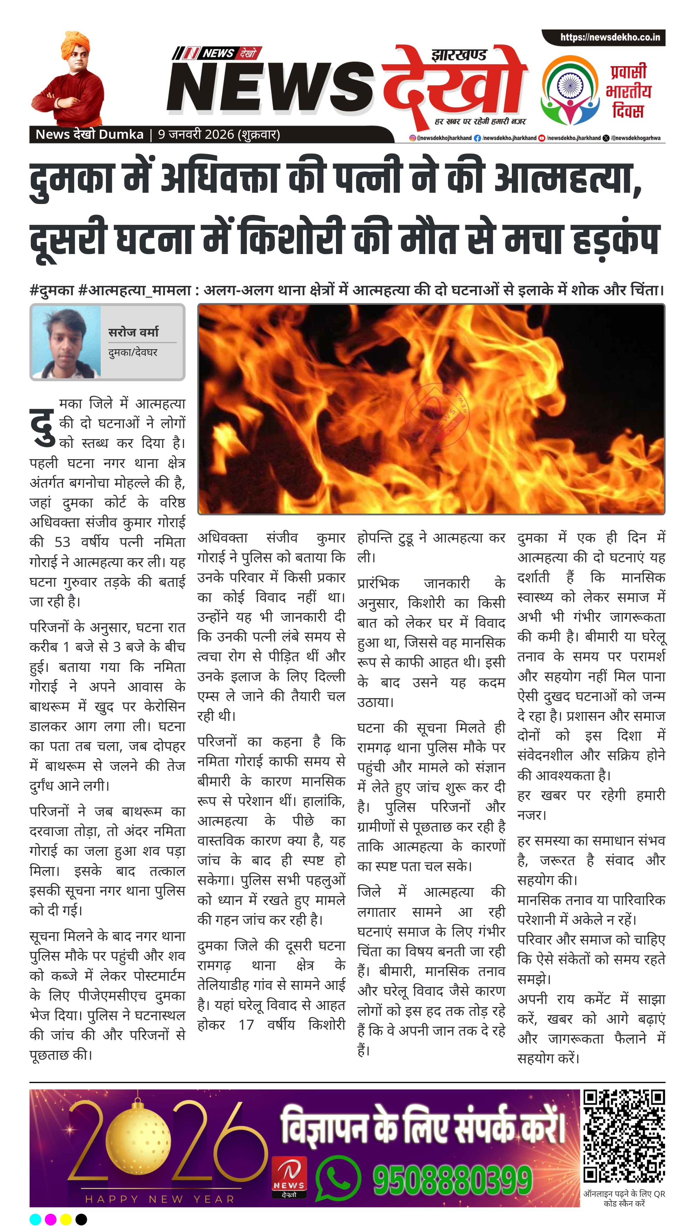 दुमका में एक ही दिन में आत्महत्या की दो घटनाएं यह दर्शाती हैं कि मानसिक स्वास्थ्य को लेकर समाज में अभी भी गंभीर जागरूकता की कमी है। बीमारी या घरेलू तनाव के समय पर परामर्श और सहयोग नहीं मिल पाना ऐसी दुखद घटनाओं को जन्म दे रहा है। प्रशासन और समाज दोनों को इस दिशा में संवेदनशील और सक्रिय होने की आवश्यकता है।
